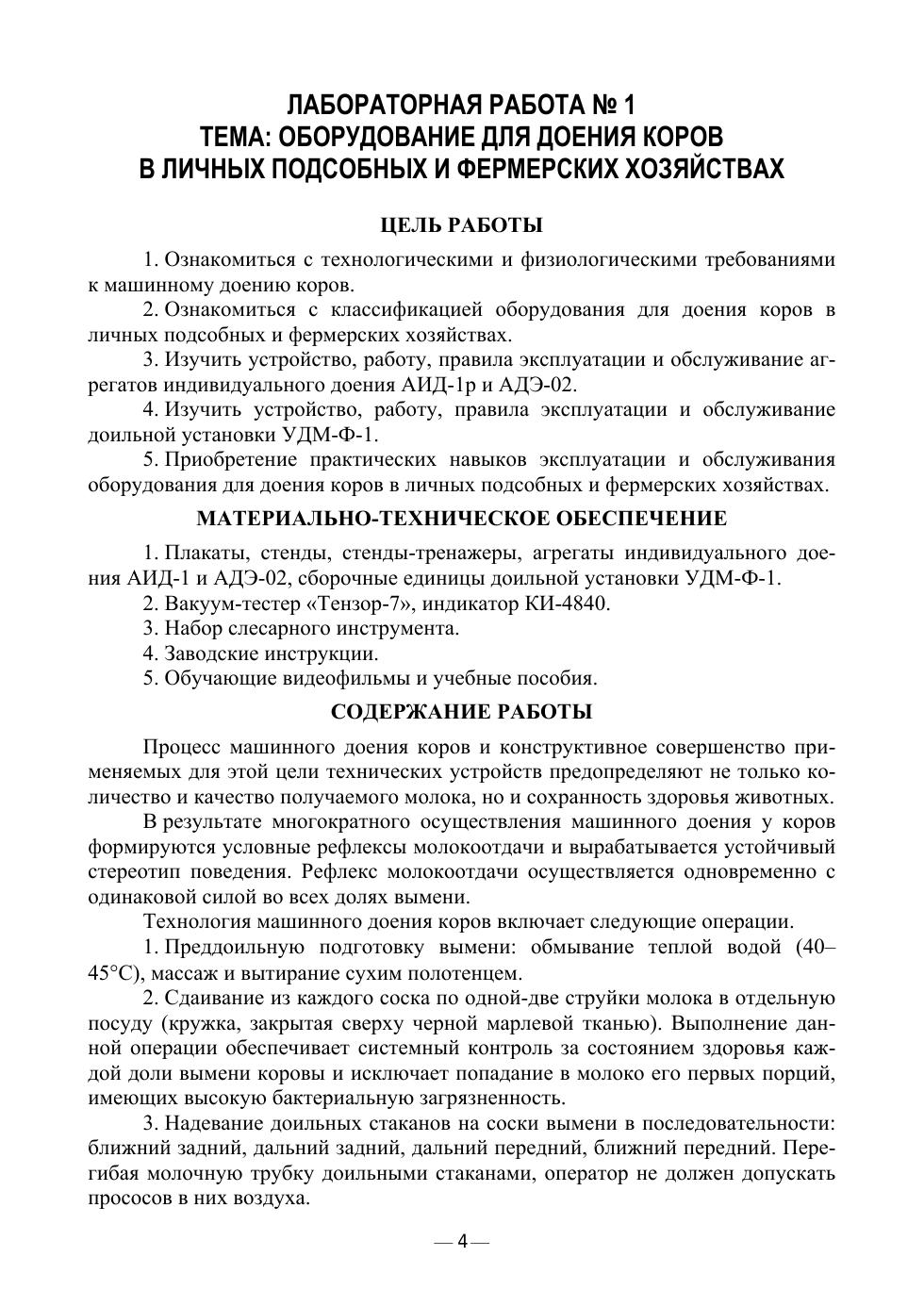 Основное содержание учебного пособия, представленного в виде лабораторного практикума, посвящено вопросам эксплуатации и технического обслуживания машин и оборудования животноводческих предприятий в соответствии с требованиями инструкций заводов-изготовителей по устройству, эксплуатации и обслуживанию. Издается пособие в двух частях. Данная часть включает в себя 9 лабораторных работ, в которых представлены машины и оборудование, применяемые для доения коров, первичной обработки и кратковременного хранения молока, а также вопросы, связанные с их техническим обслуживанием и ремонтом. Приведены возможные неисправности и способы их устранения. В каждой работе представлены вопросы отчета, контрольные вопросы и задания, а также задания для практического выполнения. Пособие предназначено для студентов вузов.