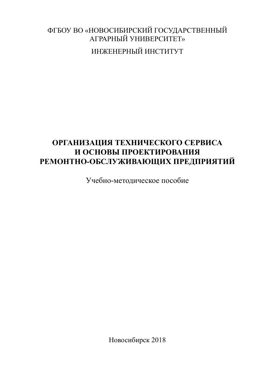 В учебно-методическом пособии отражены структура ремонтно-обслуживающей базы и общие принципы организации технического сервиса в АПК, типы ремонтно-обслуживающих предприятий и их характеристика, представлены методики расчёта основных показателей для проектирования новых и реконструкции действующих предприятий технического сервиса и их подразделений. Учебно-методическое пособие предназначено для самостоятельной работы, курсового проектирования и выполнения выпускных квалификационных работ студентами очной и заочной форм обучения по направлениям подготовки «Агроинженерия» и «Эксплуатация транспортно-технологических машин и комплексов» (бакалавриат и магистратура). Утверждено и рекомендовано к изданию учебно-методическим советом Инженерного института НГАУ протокол № 7 от 27 февраля 2018 г.