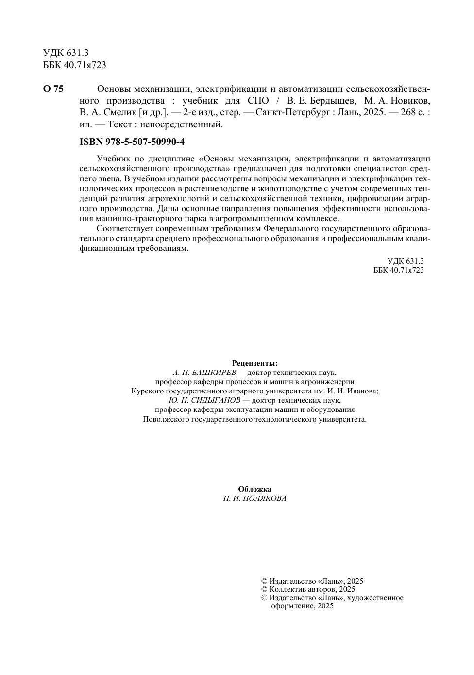 Учебник по дисциплине «Основы механизации, электрификации и автоматизации сельскохозяйственного производства» предназначен для подготовки специалистов среднего звена. В учебном издании рассмотрены вопросы механизации и электрификации технологических процессов в растениеводстве и животноводстве с учетом современных тенденций развития агротехнологий и сельскохозяйственной техники, цифровизации аграрного производства. Даны основные направления повышения эффективности использования машинно-тракторного парка в агропромышленном комплексе. Соответствует современным требованиям Федерального государственного образовательного стандарта среднего профессионального образования и профессиональным квалификационным требованиям.