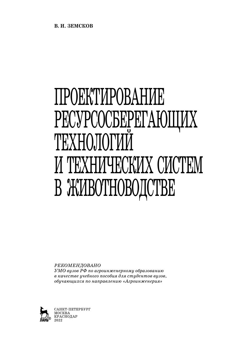 Проектирование ресурсосберегающих технологий и технических систем в животноводстве