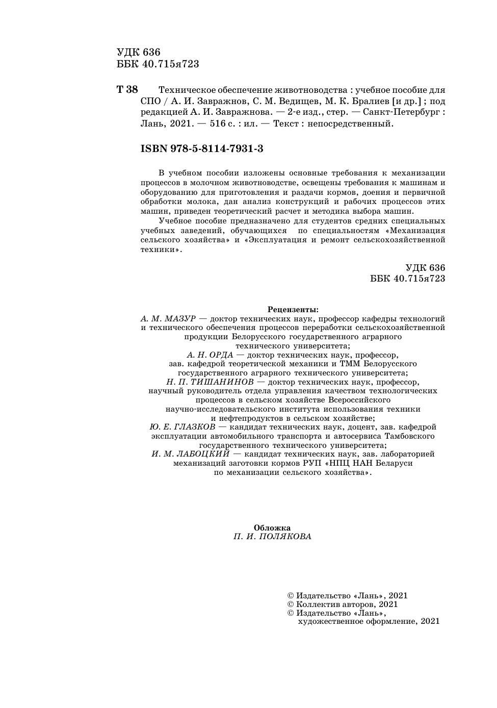 В учебном пособии изложены основные требования к механизации процессов в молочном животноводстве, освещены требования к машинам и оборудованию для приготовления и раздачи кормов, доения и первичной обработки молока, дан анализ конструкций и рабочих процессов этих машин, приведен теоретический расчет и методика выбора машин.