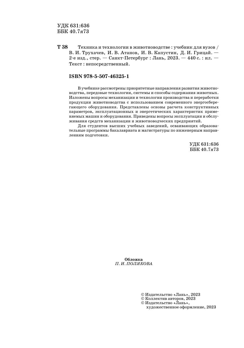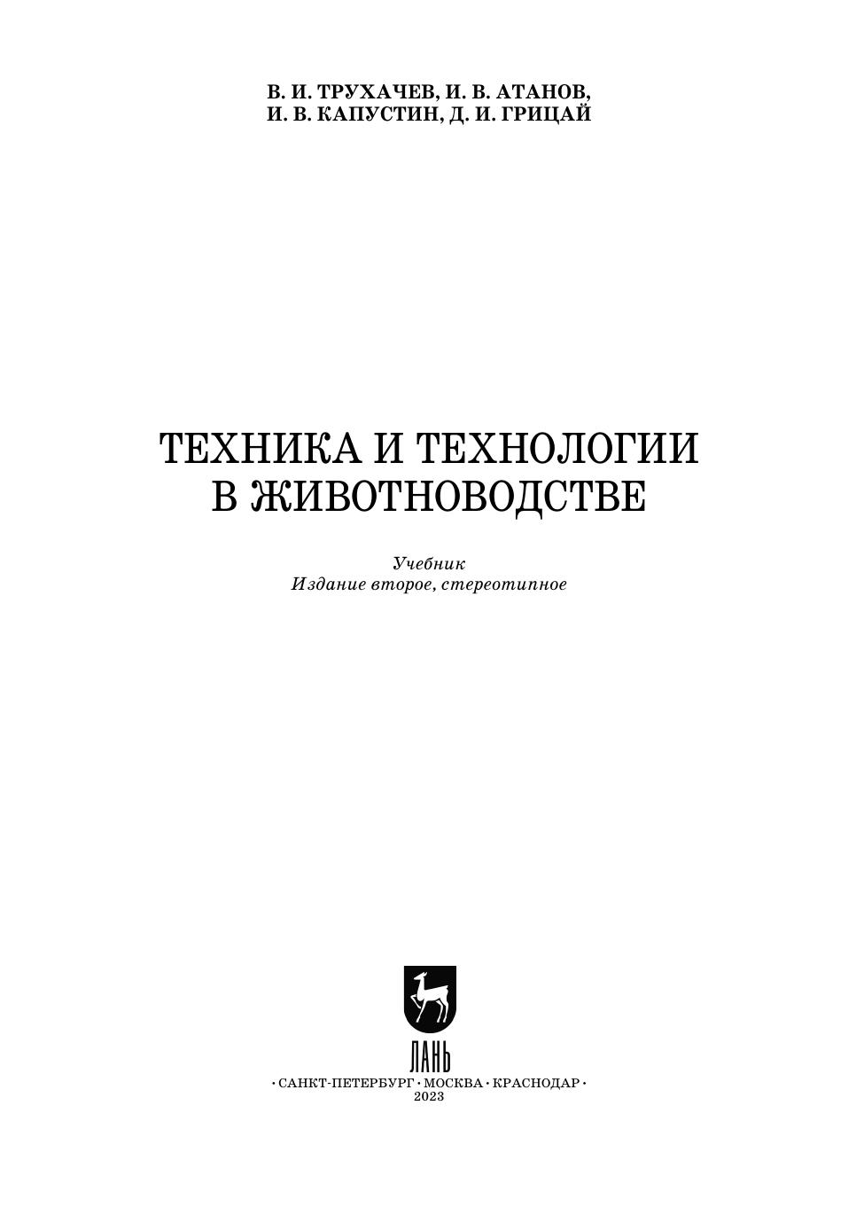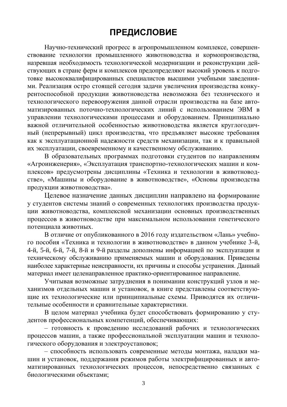 В учебнике рассмотрены приоритетные направления развития животно-водства, передовые технологии, системы и способы содержания животных. Изложены вопросы механизации и технологии производства и переработки продукции животноводства с использованием современного энергосберегающего оборудования. Представлены основы расчета конструктивных параметров, эксплуатационных и энергетических характеристик применяемых машин и оборудования. Приведены вопросы эксплуатации и обслуживания средств механизации и животноводческих предприятий. Для студентов высших учебных заведений, осваивающих образова-тельные программы бакалавриата и магистратуры по инженерным направлениям подготовки.