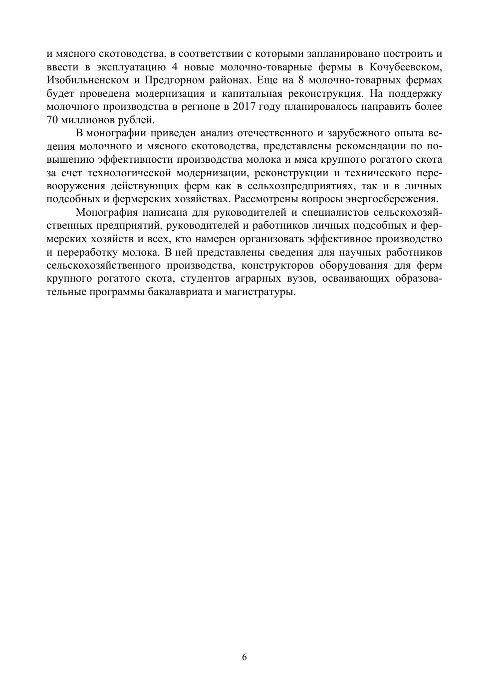 Монография написана для руководителей и специалистов сельскохозяйственных предприятий, руководителей и работников личных подсобных и фермерских хозяйств и всех, кто намерен организовать эффективное производство и переработку молока. В ней представлены сведения для научных работников сельскохозяйственного производства, конструкторов оборудования для ферм крупного рогатого скота, студентов аграрных вузов, осваивающих образовательные программы бакалавриата и магистратуры.