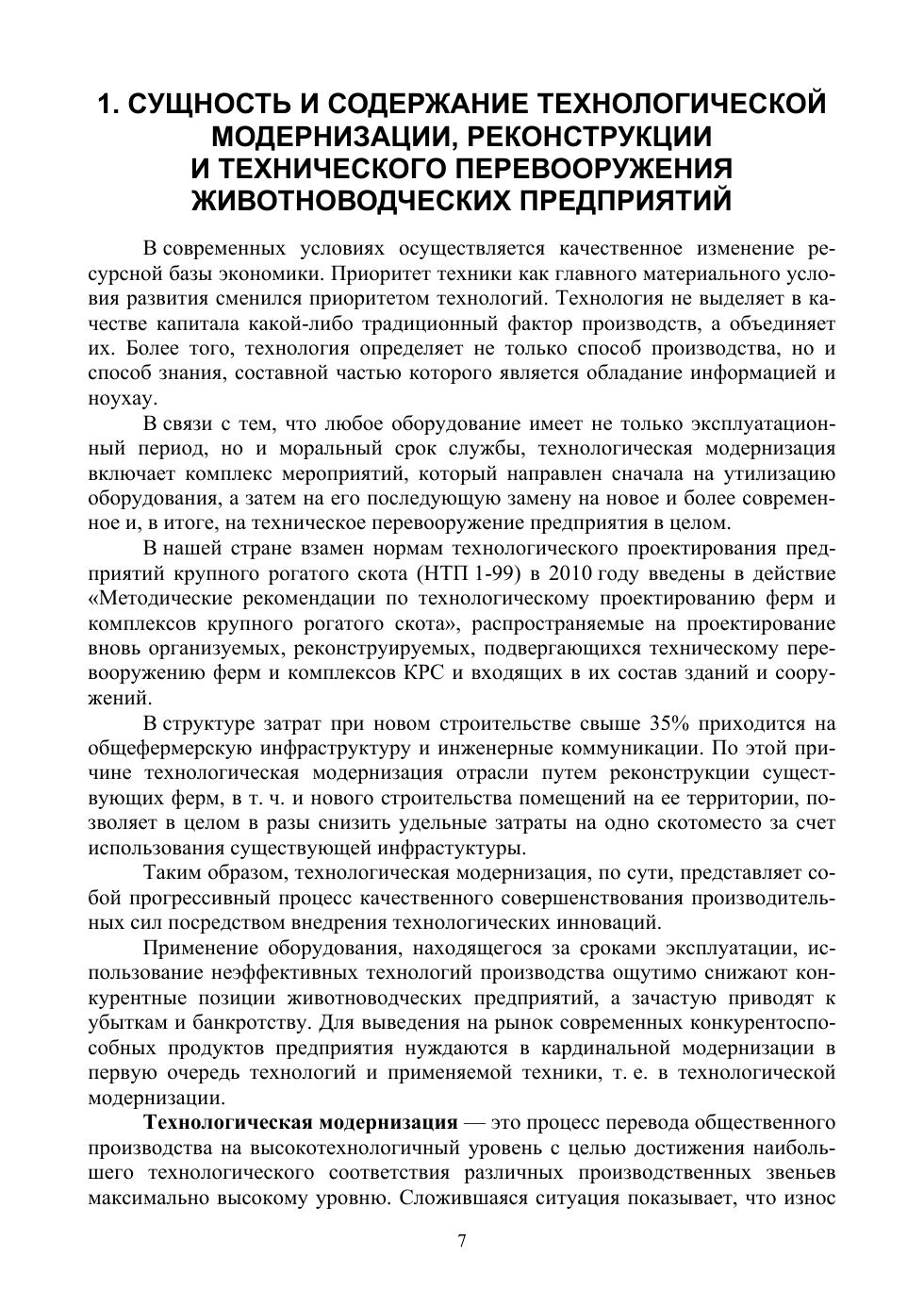 Технологическая модернизация и реконструкция ферм крупного рогатого скота