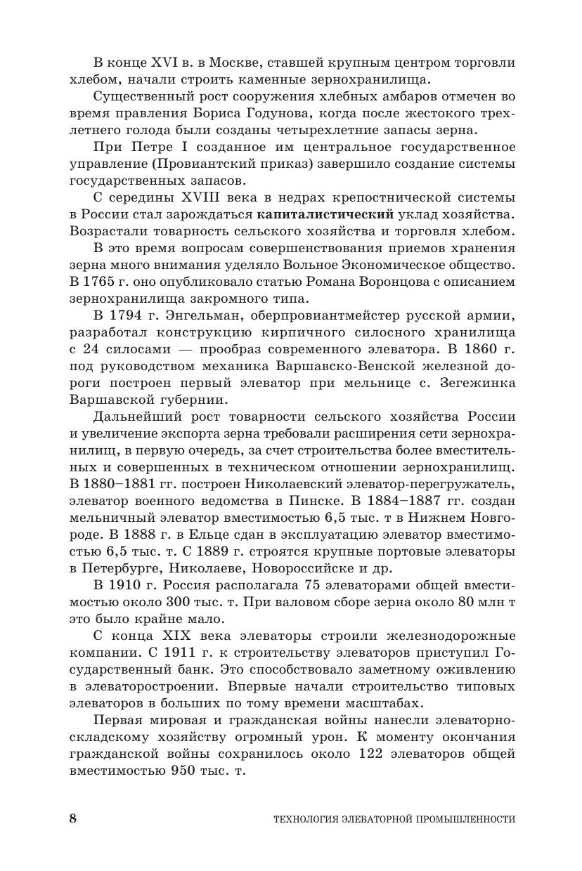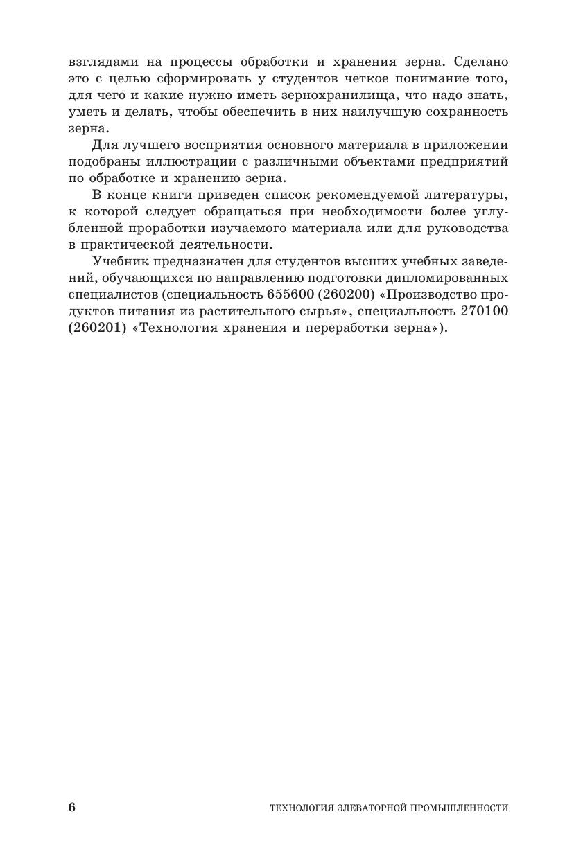 В учебнике изложены базовые материалы, позволяющие сформировать достаточные знания о технологиях элеваторной промышленности, устройстве основных типов зернохранилищ, свойствах зерновой массы как сыпучем материале, методах оперативного расчета зернохранилищ, автоматизации и механизации производственных процессов, управлении технологическими процессами, эксплуатации предприятий и др. Учебник предназначен для студентов вузов, обучающихся по направлению подготовки дипломированных специалистов «Производство продуктов питания из растительного сырья», специальности «Технология хранения и переработки зерна».