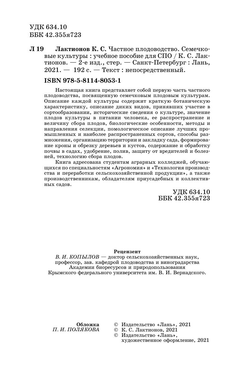 Книга адресована студентам аграрных колледжей, обучающихся по специальности «Агрономия» и «Технология производства и переработки сельскохозяйственной продукции», а также производственникам, обладателям приусадебных и коллективных садов.