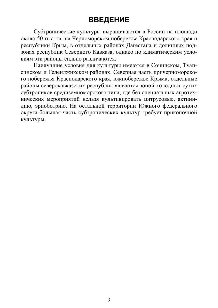 В книге основное внимание уделено распространенным в России субтропическим культурам: хурме, гранату, инжиру, оливе, мандарину. Помимо них, описаны мало распространенные, но перспективные культуры: фейхоа, зизифус, азимина. Площади, пригодные для выращивания субтропических культур в России невелики, причем более 90% их плодов получают в приусадебных и коллективных хозяйствах. Описание каждой культуры включает общую характеристику, биологические особенности, распространение, значение ее плодов в питании, направления селекции, описание новых перспективных сортов, агротехнологию. Книга предназначена для преподавателей, студентов, магистров, аспирантов, производственников, владельцев приусадебных и коллективных садов.