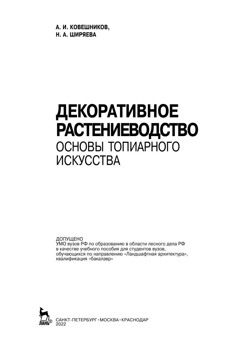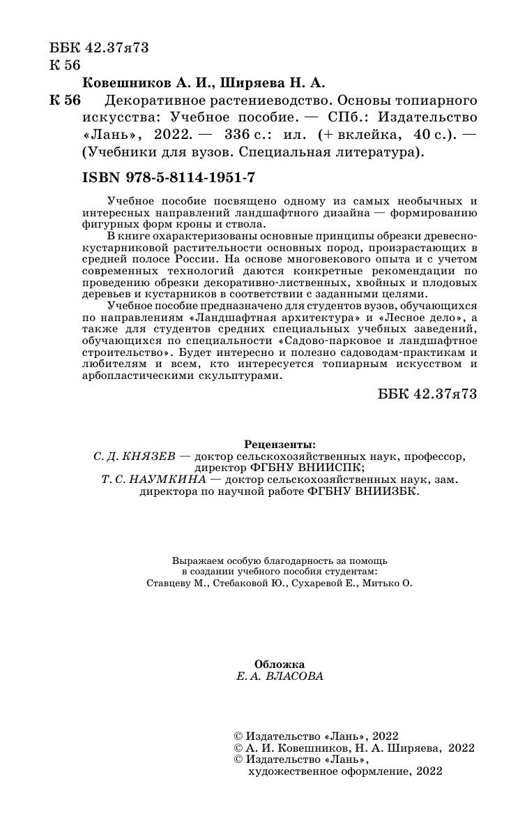 Учебное пособие посвящено одному из самых необычных и интересных направлений ландшафтного дизайна — формированию фигурных форм кроны и ствола. В книге охарактеризованы основные принципы обрезки древесно-кустарниковой растительности основных пород, произрастающих в средней полосе России. На основе многовекового опыта и с учетом современных технологий даются конкретные рекомендации по проведению обрезки декоративно-лиственных, хвойных и плодовых деревьев и кустарников в соответствии с заданными целями. Учебное пособие предназначено для студентов вузов, обучающихся по направлениям «Ландшафтная архитектура» и «Лесное дело», а также для студентов средних специальных учебных заведений, обучающихся по специальности «Садово-парковое и ландшафтное строительство». Будет интересно и полезно садоводам-практикам и любителям и всем, кто интересуется топиарным искусством и арбопластическими скульптурами.