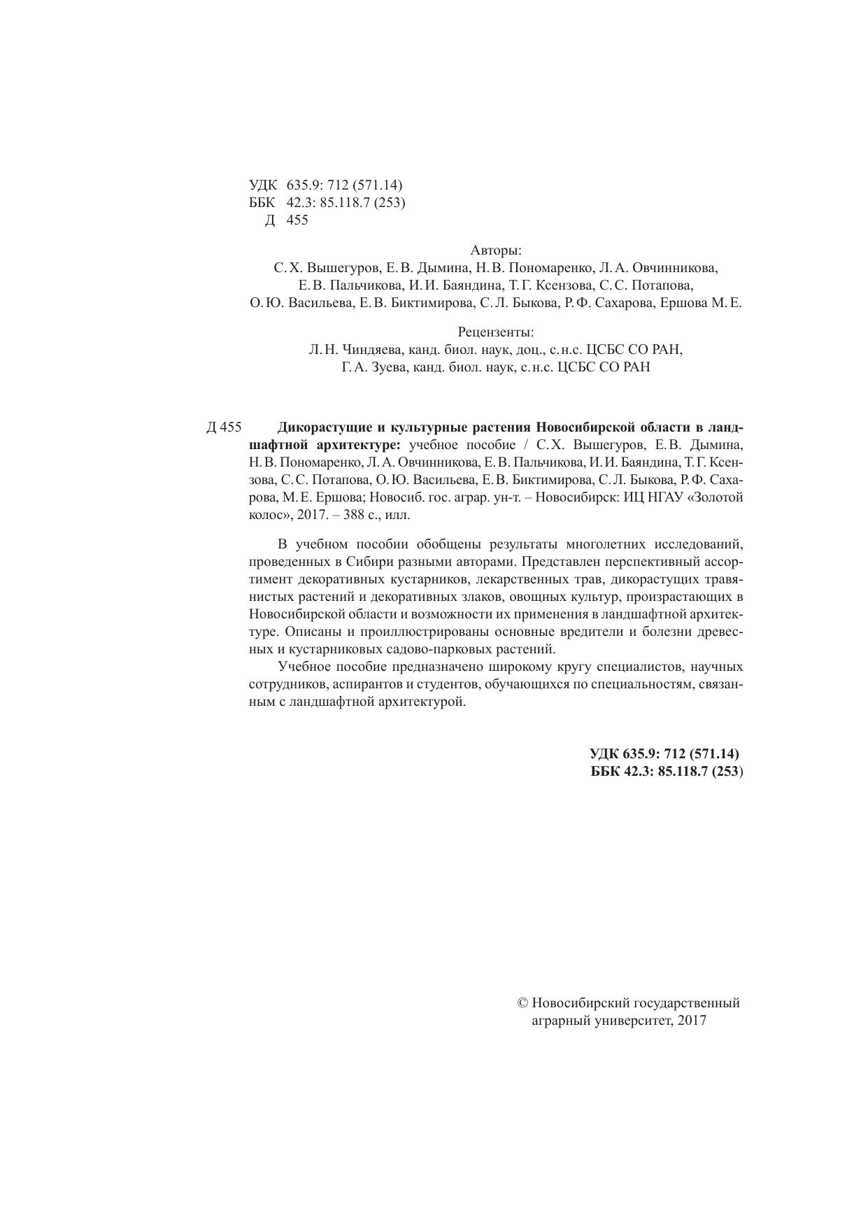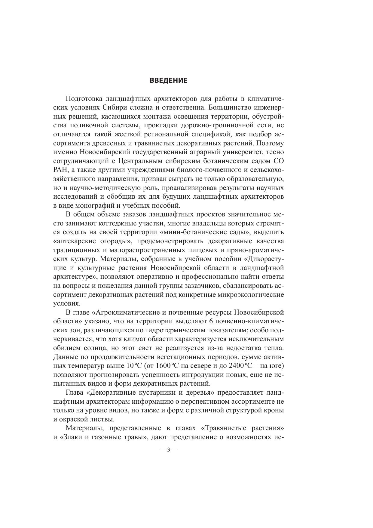В учебном пособии обобщены результаты многолетних исследований, проведенных в Сибири разными авторами. Представлен перспективный ассортимент декоративных кустарников, лекарственных трав, дикорастущих травянистых растений и декоративных злаков, овощных культур, произрастающих в Новосибирской области и возможности их применения в ландшафтной архитектуре. Описаны и проиллюстрированы основные вредители и болезни древесных и кустарниковых садово-парковых растений. Учебное пособие предназначено широкому кругу специалистов, научных сотрудников, аспирантов и студентов, обучающихся по специальностям, связанным с ландшафтной архитектурой.