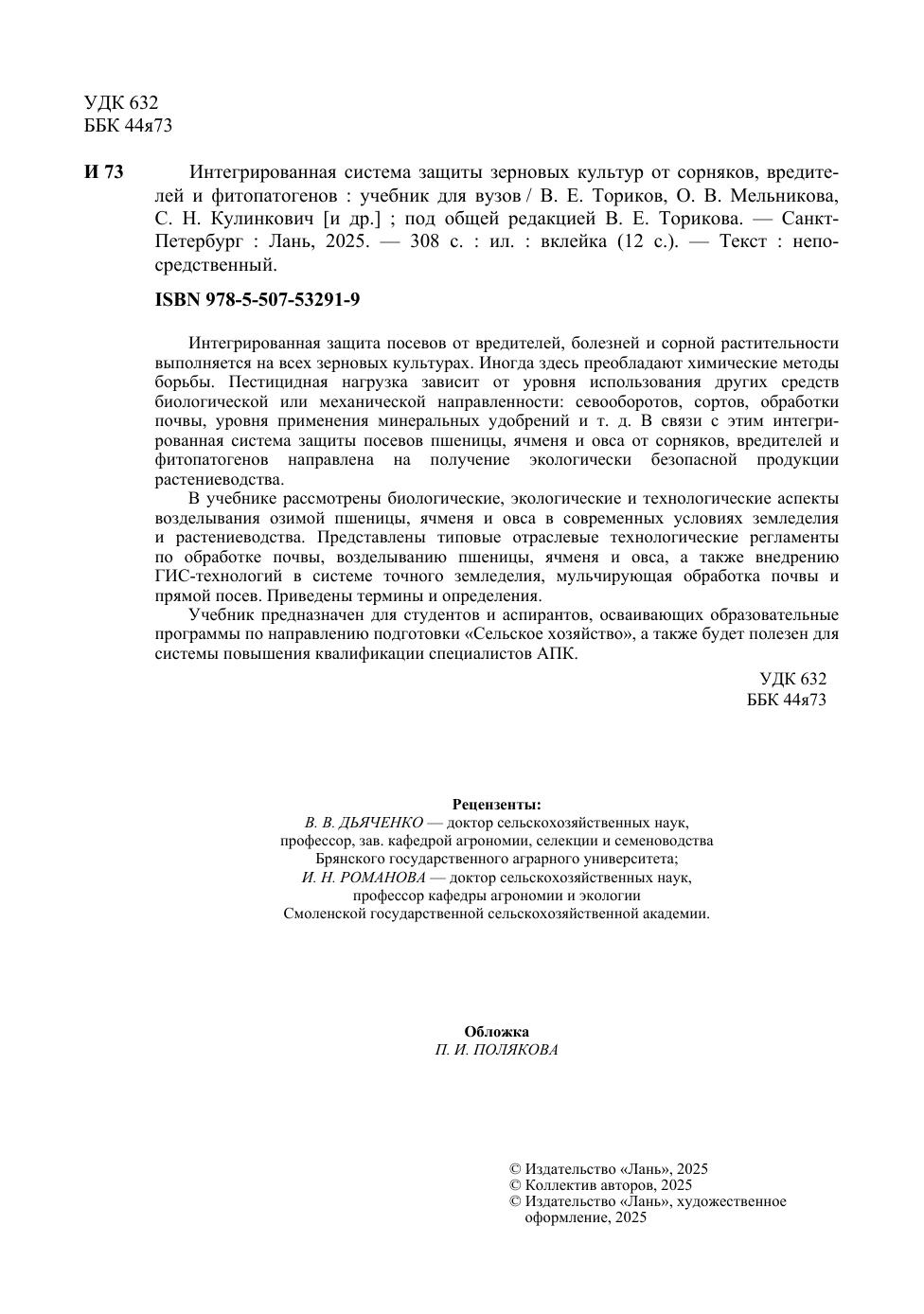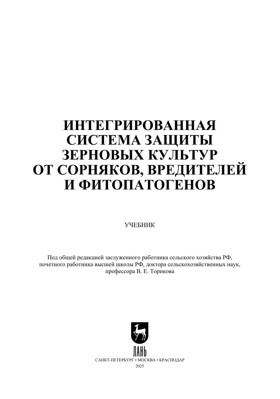 Интегрированная защита посевов от вредителей, болезней и сорной растительности выполняется на всех зерновых культурах. Иногда здесь преобладают химические методы борьбы. Пестицидная нагрузка зависит от уровня использования других средств биологической или механической направленности: севооборотов, сортов, обработки почвы, уровня применения минеральных удобрений и т. д. В связи с этим интегрированная система защиты посевов пшеницы, ячменя и овса от сорняков, вредителей и фитопатогенов направлена на получение экологически безопасной продукции растениеводства. В учебнике рассмотрены биологические, экологические и технологические аспекты возделывания озимой пшеницы, ячменя и овса в современных условиях земледелия и растениеводства. Представлены типовые отраслевые технологические регламенты по обработке почвы, возделыванию пшеницы, ячменя и овса, а также внедрению ГИС-технологий в системе точного земледелия, мульчирующая обработка почвы и прямой посев. Приведены термины и определения. Учебник предназначен для студентов и аспирантов, осваивающих образовательные программы по направлению подготовки «Сельское хозяйство», а также будет полезен для системы повышения квалификации специалистов АПК.