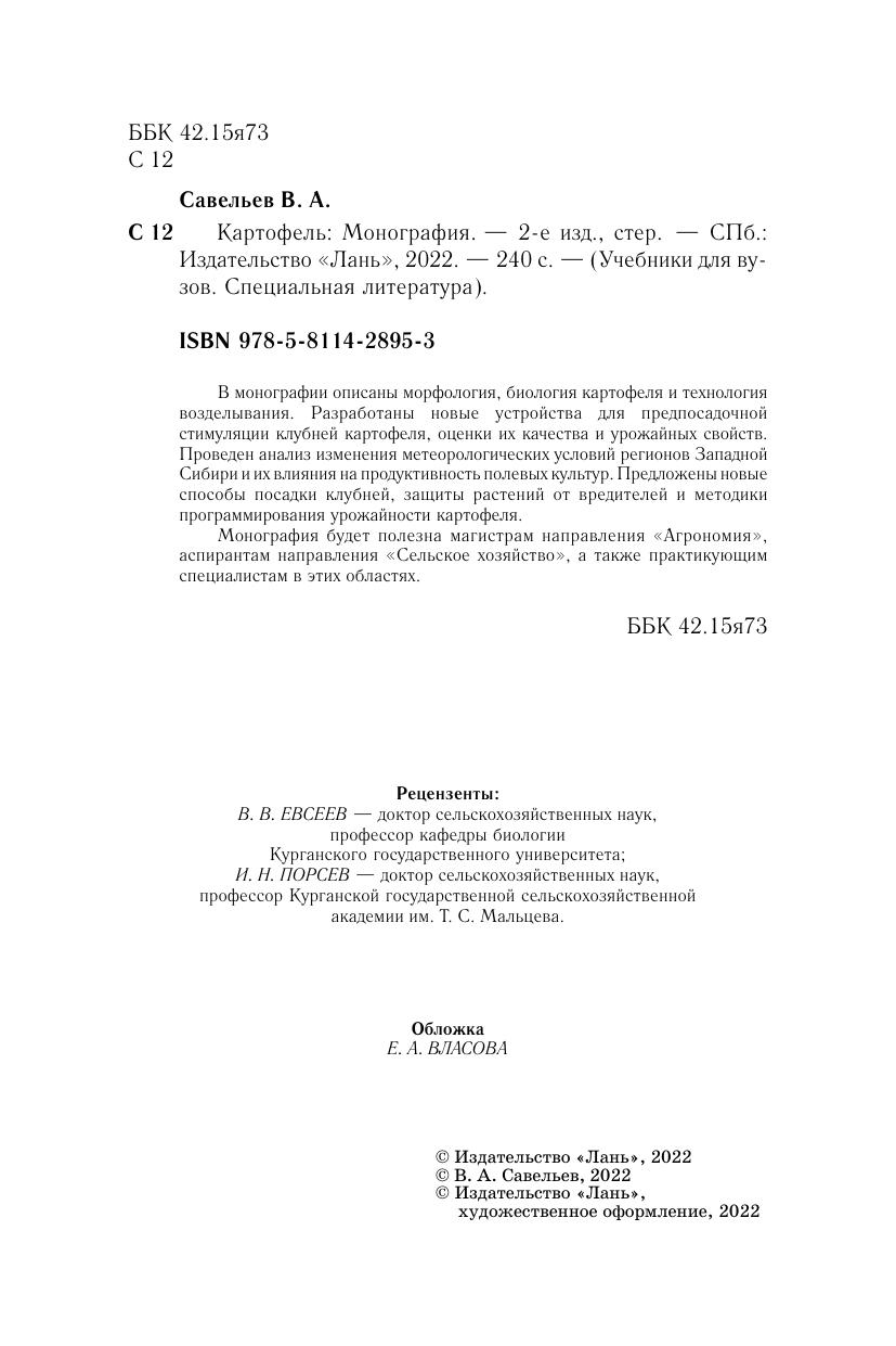 В монографии описаны морфология, биология картофеля и технология возделывания. Разработаны новые устройства для предпосадочной стимуляции клубней картофеля, оценки их качества и урожайных свойств. Проведен анализ изменения метеорологических условий регионов Западной Сибири и их влияния на продуктивность полевых культур. Предложены новые способы посадки клубней, защиты растений от вредителей и методики программирования урожайности картофеля. Монография будет полезна магистрам направления «Агрономия», аспирантам направления «Сельское хозяйство», а также практикующим специалистам в этих областях.