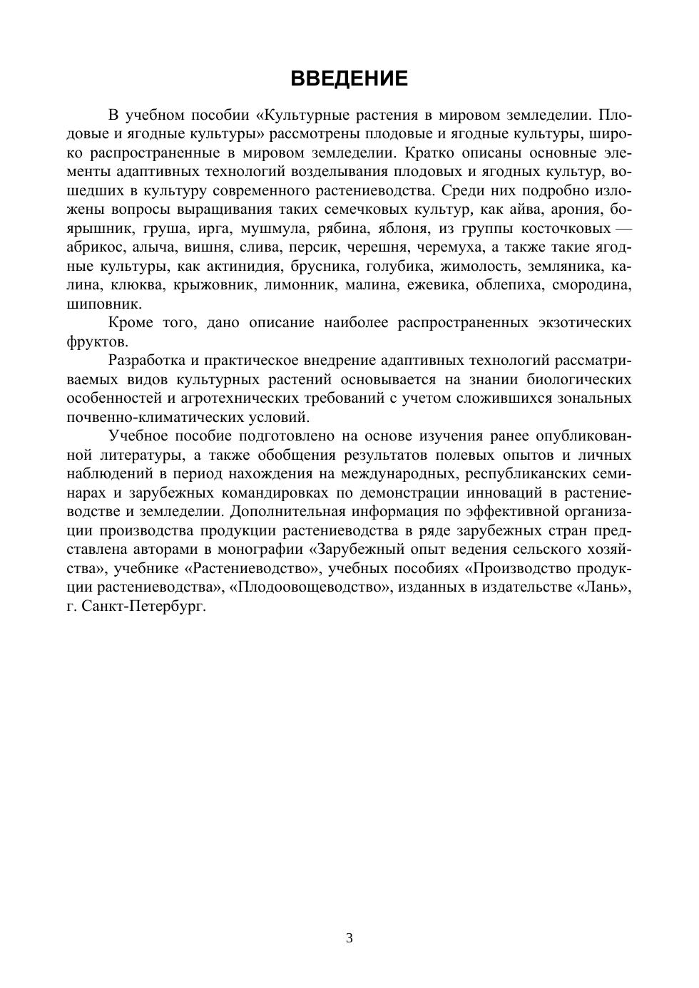 Описано значение, экологические, морфологические, биологические особенности и базовые технологии возделывания наиболее распространенных культивируемых плодовых и ягодных культур. Отдельные элементы базовых технологий могут быть взяты как основа для разработки адаптивных агротехнических приемов их возделывания применительно к конкретным почвенно-климатическим условиям региона. Учебное пособие предназначено для студентов вузов.