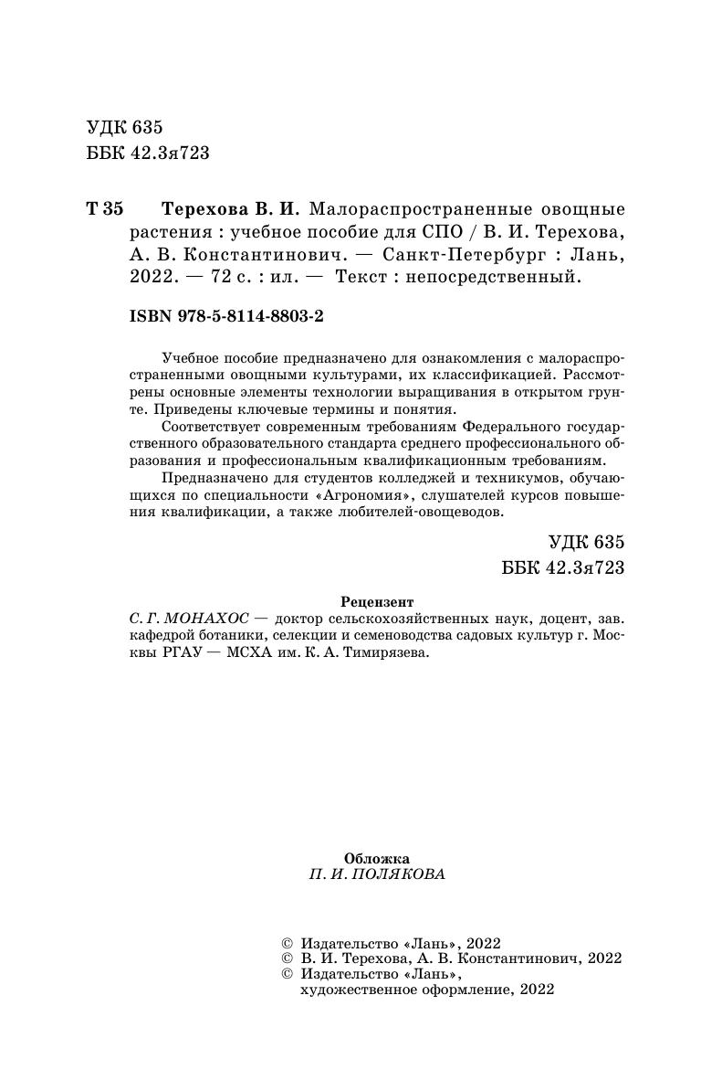 Предназначено для студентов колледжей и техникумов, обучающихся по специальности «Агрономия», слушателей курсов повышения квалификации, а также любителей-овощеводов.