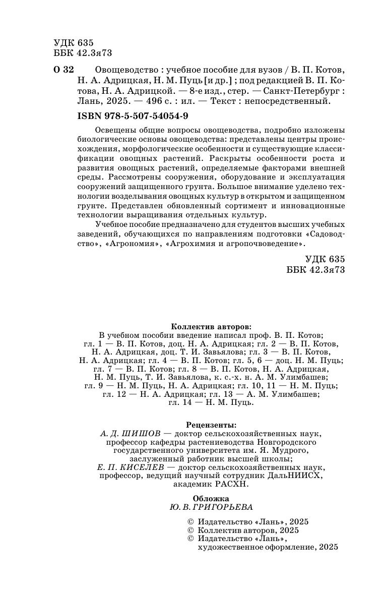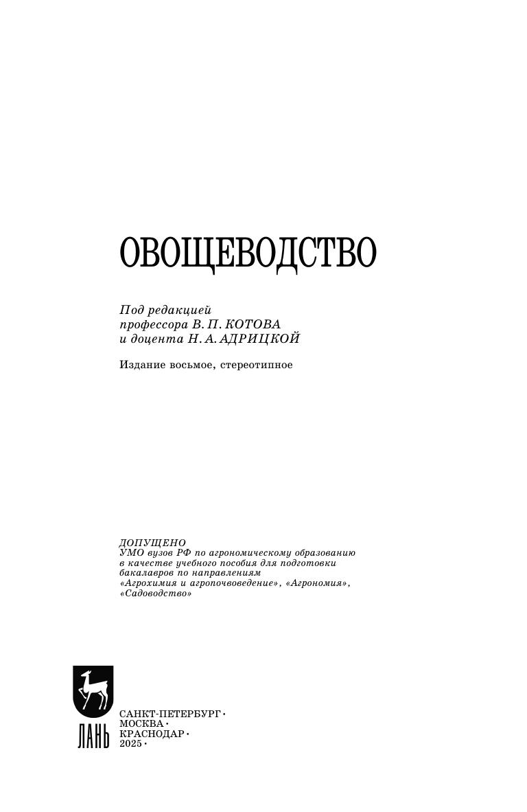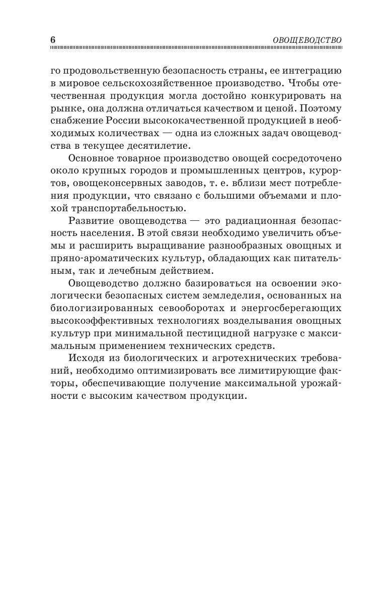Освещены общие вопросы овощеводства, подробно изложены биологические основы овощеводства: представлены центры происхождения, морфологические особенности и существующие классификации овощных растений. Раскрыты особенности роста и развития овощных растений, определяемые факторами внешней среды. Рассмотрены сооружения, оборудование и эксплуатация сооружений защищенного грунта. Большое внимание уделено технологии возделывания овощных культур в открытом и защищенном грунте. Представлен обновленный сортимент и инновационные технологии выращивания отдельных культур. Учебное пособие предназначено для студентов высших учебных заведений, обучающихся по направлениям подготовки «Садоводство», «Агрономия», «Агрохимия и агропочвоведение».
