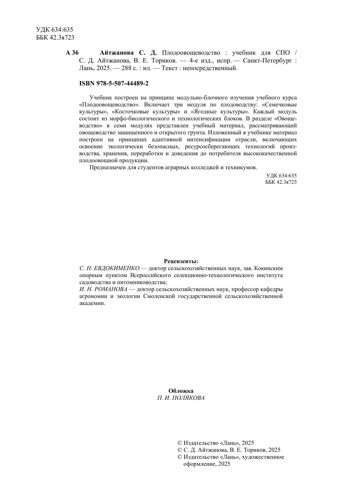 Учебник построен на принципе модульно-блочного изучения учебного курса «Плодоовощеводство». Включает три модуля по плодоводству: «Семечковые культуры», «Косточковые культуры» и «Ягодные культуры». Каждый модуль состоит из морфо-биологического и технологических блоков. В разделе «Овощеводство» в семи модулях представлен учебный материал, рассматривающий овощеводство защищенного и открытого грунта. Изложенный в учебнике материал построен на принципах адаптивной интенсификации отрасли, включающих освоение экологически безопасных, ресурсосберегающих технологий производства, хранения, переработки и доведения до потребителя высококачественной плодоовощной продукции. Предназначен для студентов аграрных колледжей и техникумов.