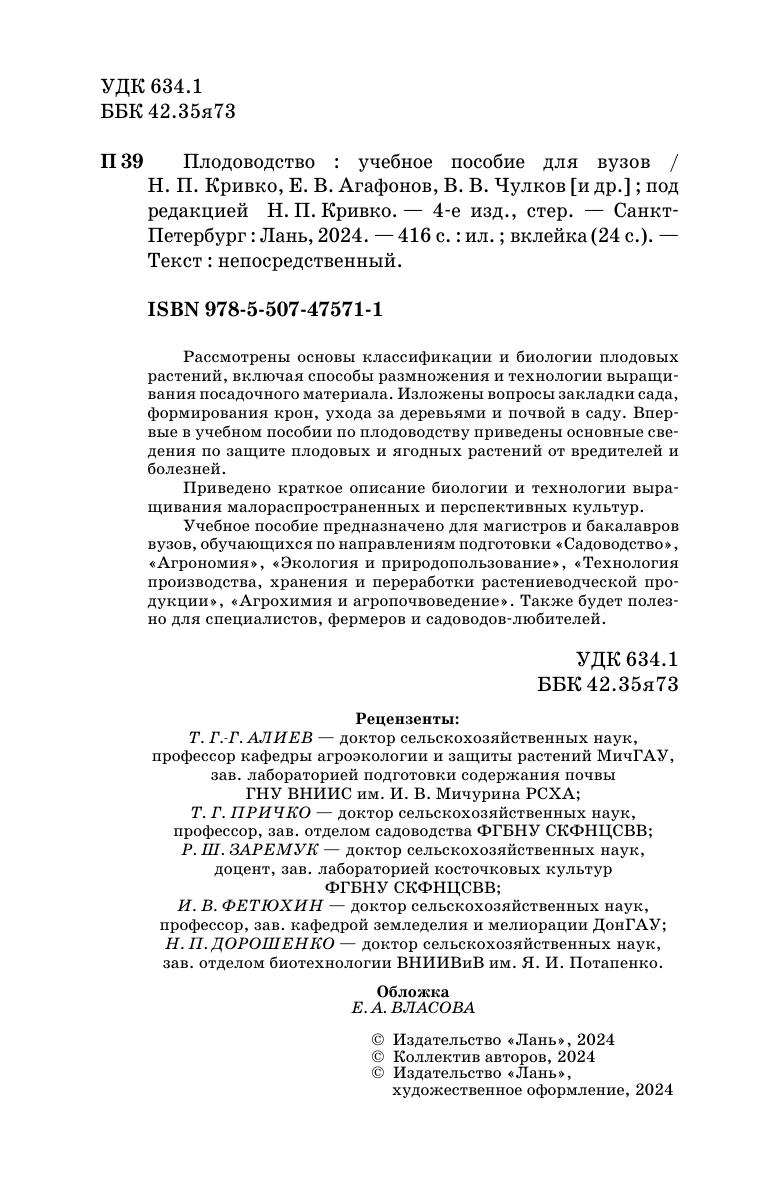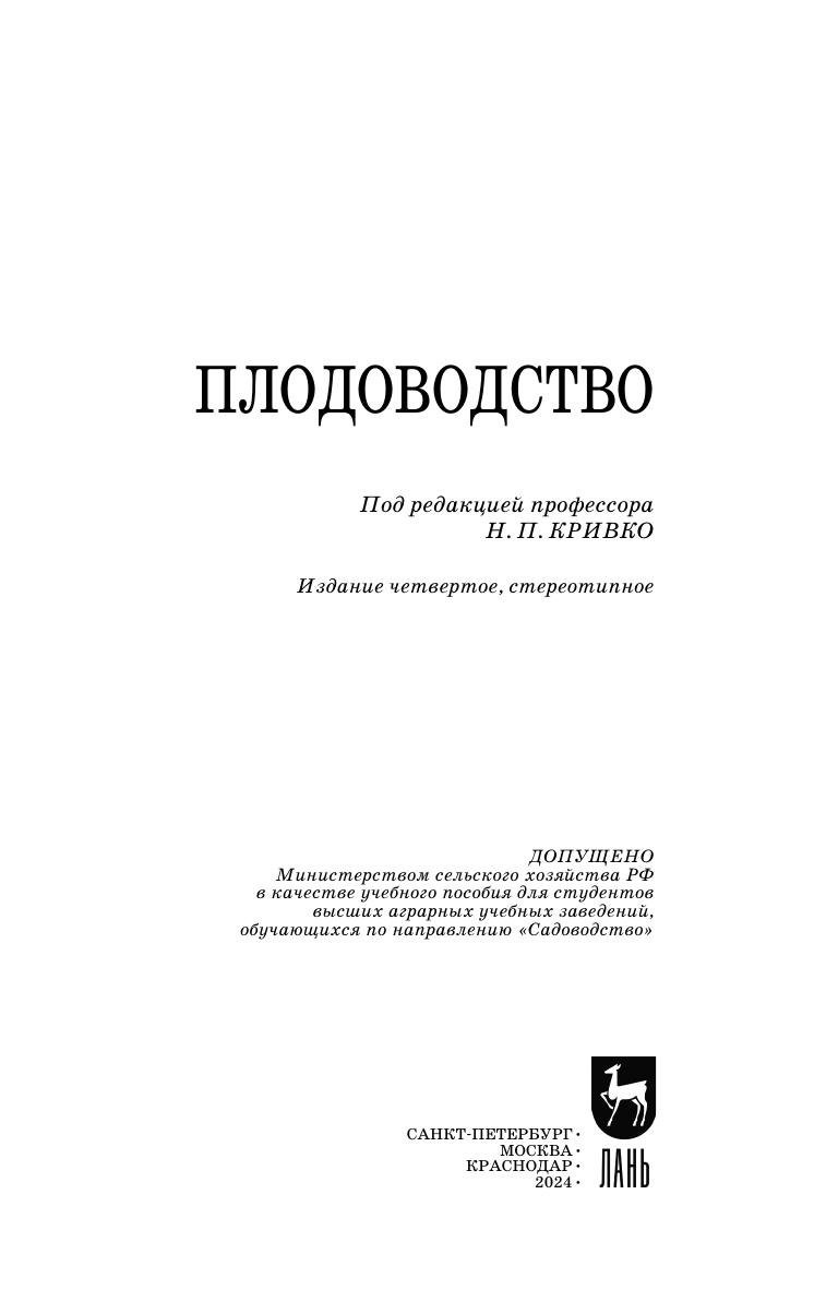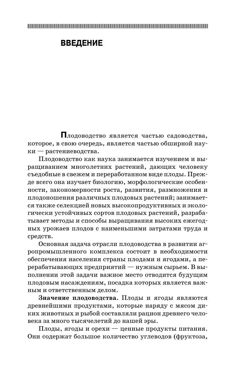 Рассмотрены основы классификации и биологии плодовых растений, включая способы размножения и технологии выращивания посадочного материала. Изложены вопросы закладки сада, формирования крон, ухода за деревьями и почвой в саду. Впервые в учебном пособии по плодоводству приведены основные сведения по защите плодовых и ягодных растений от вредителей и болезней. Приведено краткое описание биологии и технологии выращивания малораспространенных и перспективных культур. Учебное пособие предназначено для магистров и бакалавров вузов, обучающихся по направлениям подготовки «Садоводство», «Агрономия», «Экология и природопользование», «Технология производства, хранения и переработки растениеводческой продукции», «Агрохимия и агропочвоведение». Также будет полезно для специалистов, фермеров и садоводов-любителей.