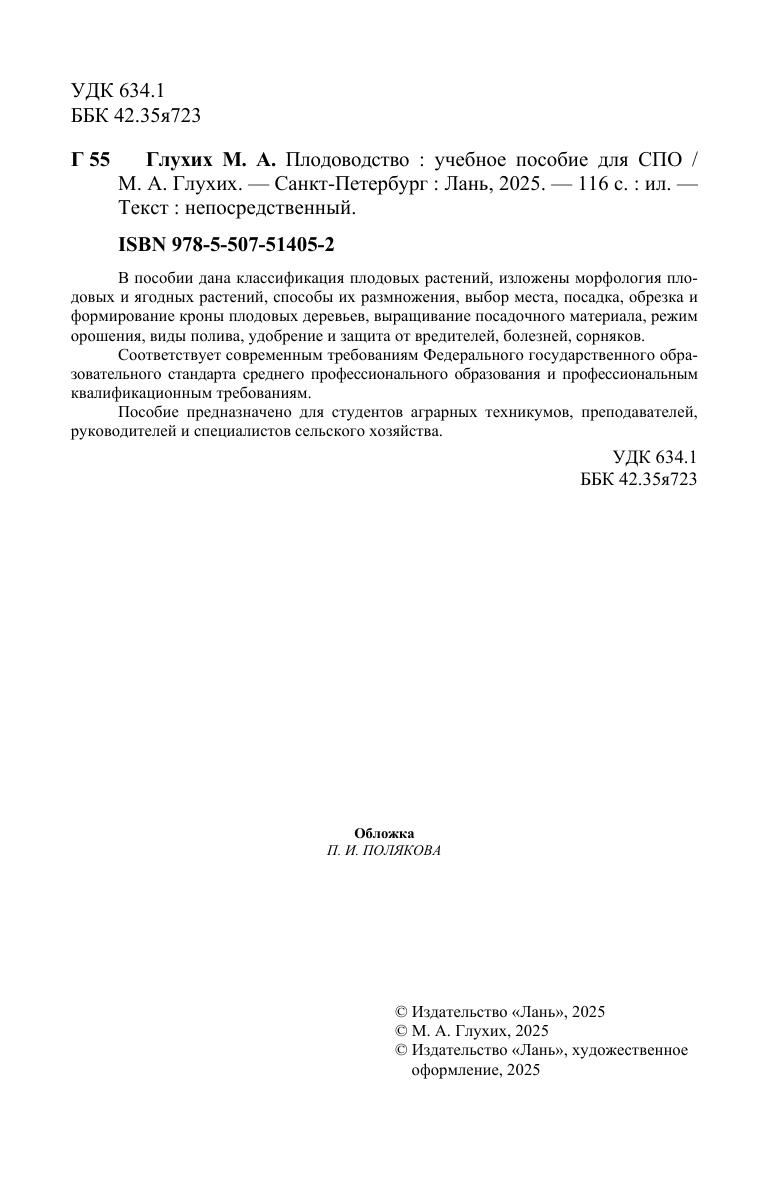 В пособии дана классификация плодовых растений, изложены морфология плодовых и ягодных растений, способы их размножения, выбор места, посадка, обрезка и формирование кроны плодовых деревьев, выращивание посадочного материала, режим орошения, виды полива, удобрение и защита от вредителей, болезней, сорняков. Соответствует современным требованиям Федерального государственного образовательного стандарта среднего профессионального образования и профессиональным квалификационным требованиям. Пособие предназначено для студентов аграрных техникумов, преподавателей, руководителей и специалистов сельского хозяйства.