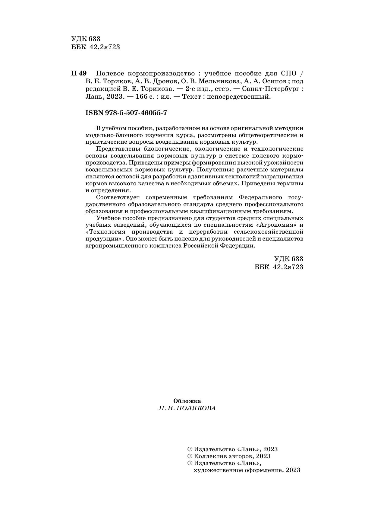 В учебном пособии, разработанном на основе оригинальной методики модельно-блочного изучения курса, рассмотрены общетеоретические и практические вопросы возделывания кормовых культур. Представлены биологические, экологические и технологические основы возделывания кормовых культур в системе полевого кормопроизводства. Приведены примеры формирования высокой урожайности возделываемых кормовых культур. Полученные расчетные материалы являются основой для разработки адаптивных технологий выращивания кормов высокого качества в необходимых объемах. Приведены термины и определения. Соответствует современным требованиям Федерального государственного образовательного стандарта среднего профессионального образования и профессиональным квалификационным требованиям. Учебное пособие предназначено для студентов средних специальных учебных заведений, обучающихся по специальностям «Агрономия» и «Технология производства и переработки сельскохозяйственной продукции». Оно может быть полезно для руководителей и специалистов агропромышленного комплекса Российской Федерации.