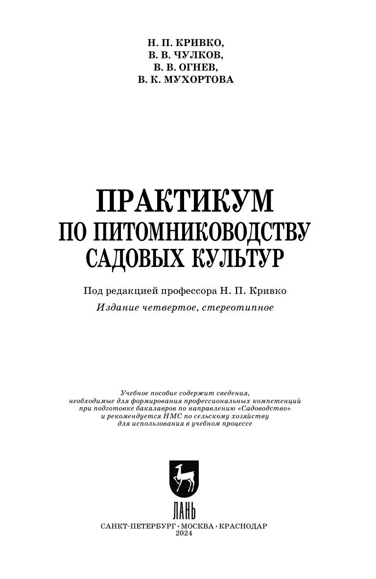 Учебное пособие подготовлено в соответствии с Государственным образовательным стандартом и примерной программой учебной дисциплины «Питомниководство садовых культур» по направлению подготовки «Садоводство». Тематика занятий, изложенных в практикуме, позволяет обучающимся более подробно изучить биологические особенности размножения садовых культур, структуры питомников для выращивания оздоровленного посадочного материала плодовых, ягодных, декоративных, овощных культур и винограда, освоить технику и приобрести умение выполнять окулировку и прививки черенками, освоить навыки оценки качества семян и черенков подвоев и привоев, а также посадочного материала основных садовых культур, изучить другие технологические процессы в питомниководстве. Студентам предоставляется возможность освоить практику расчета звеньев питомников для производства заданного количества и ассортимента посадочного материала, а также составления агротехнических планов по уходу за растениями в питомниках и в маточниках. Все это позволит студентам приобрести компетенции, предусмотренные ФГОС ВО РФ. Пособие адресовано бакалаврам, обучающимся по направлению подготовки «Садоводство». Пособие будет полезным для бакалавров всех направлений аграрного профиля, а также магистров и аспирантов аграрных специальностей.