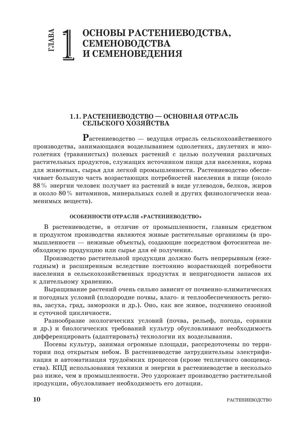 Изложены краткая история, основы растениеводства как отрасли и как науки, основы семеноводства и семеноведения. Приведена характеристика современных агротехнологий, показаны сорта зерновых, технических и кормовых культур. Раскрыты значение, распространение, урожайность, морфобиологические особенности полевых культур, их агротехнологии и резервы, использование которых позволяет получить высокие экономически эффективные урожаи с хорошим качеством продукции. Соответствует современным требованиям Федерального государственного образовательного стандарта среднего профессионального образования и профессиональным квалификационным требованиям. Учебник предназначен для студентов аграрных колледжей и техникумов.