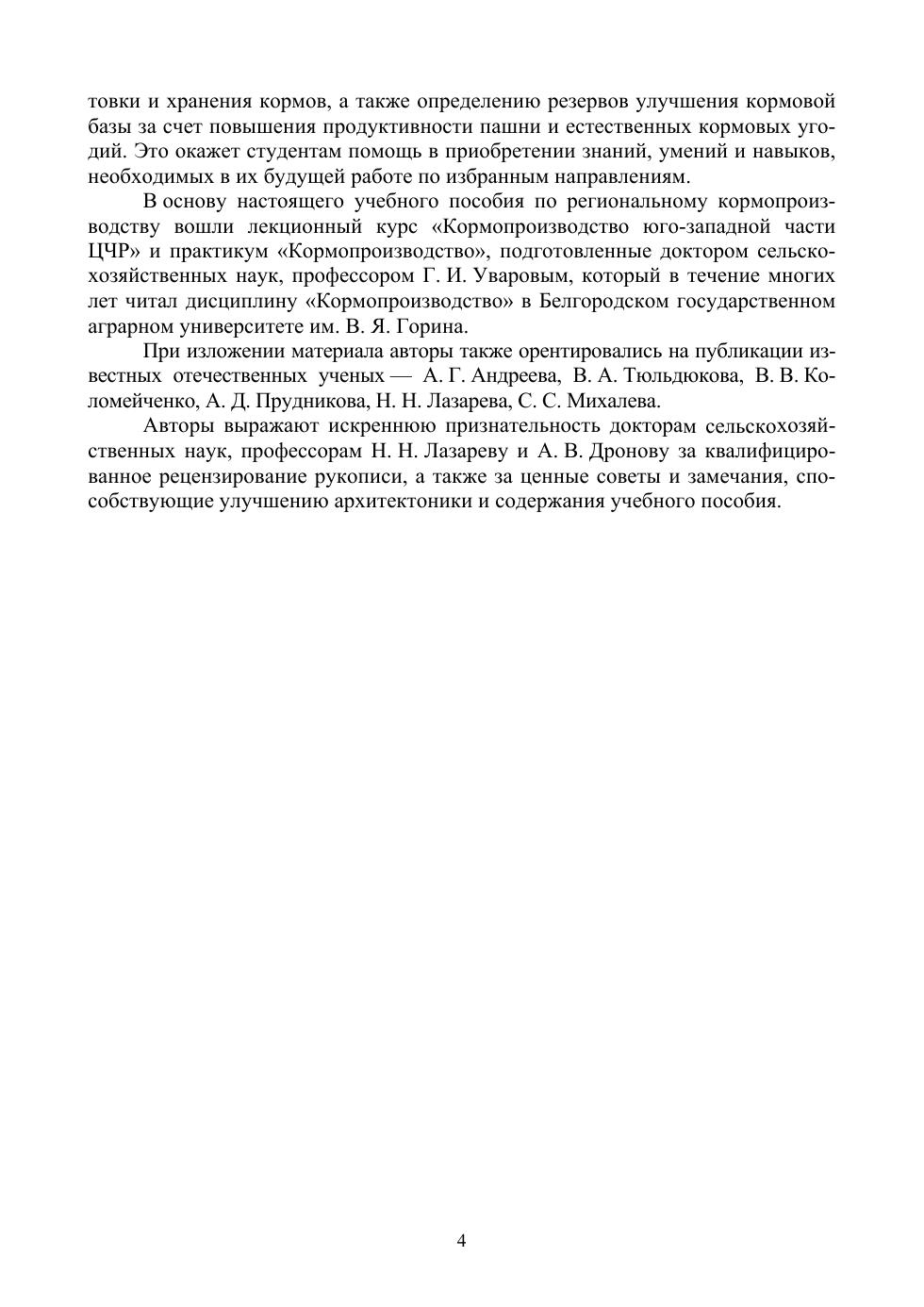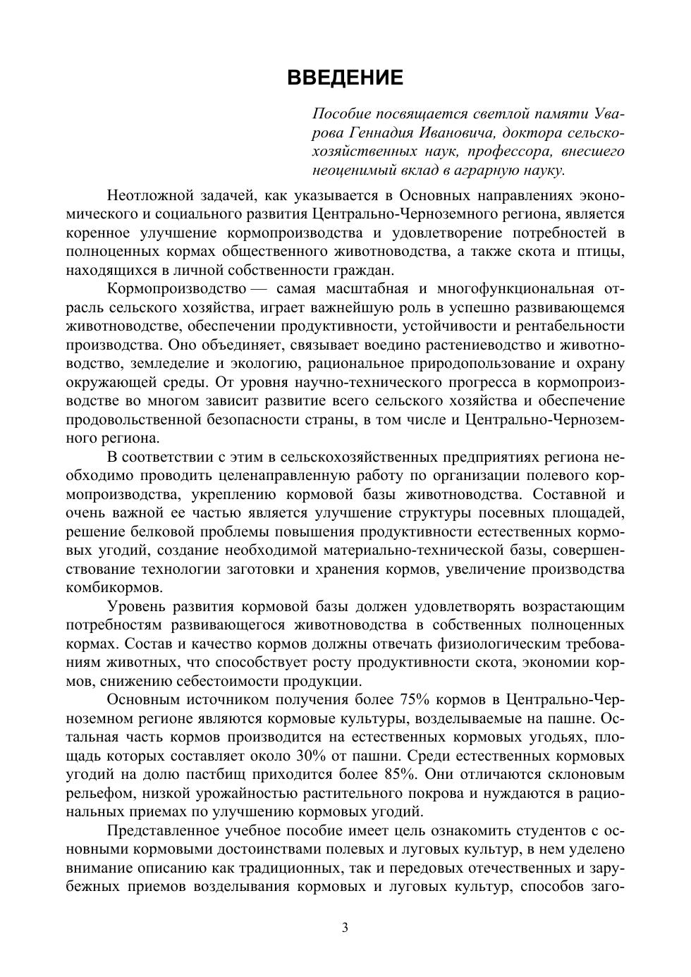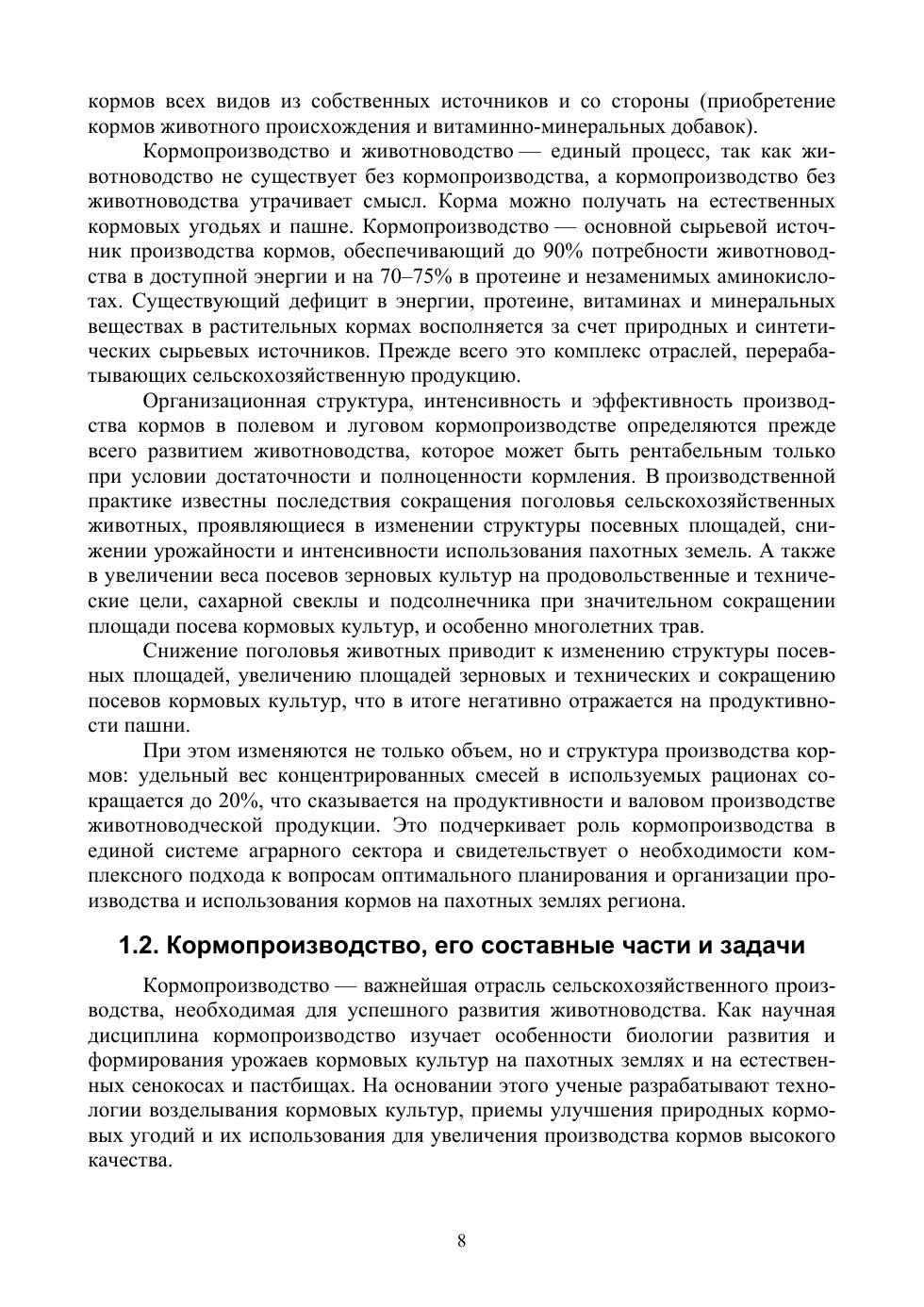 В учебном пособии дано понятие кормопроизводства как научной дисциплины, его значение для отрасли животноводства и сельского хозяйства в целом, приведён анализ состояния и перспективы развития кормопроизводства в Центрально-Черноземном регионе. Рассмотрены вопросы классификации и питательности кормов. Приводятся кормовые достоинства культур, возделываемых в регионе на пашне: зернофуражных, зернобобовых, корне- и клубнеплодов, бахчевых, силосных и малораспространенных кормовых культур, однолетних и многолетних трав. Расмотренны их морфобиологические особенности использование на корм, особенности технологии возделывания наиболее важных кормовых культур региона. Большое внимание уделено новым применяемым технологиям заготовки и хранения кормов, способам, учету и оценке их качества. Рассмотрены особенности планирования зелёного и сырьевого конвейеров в условиях региона.