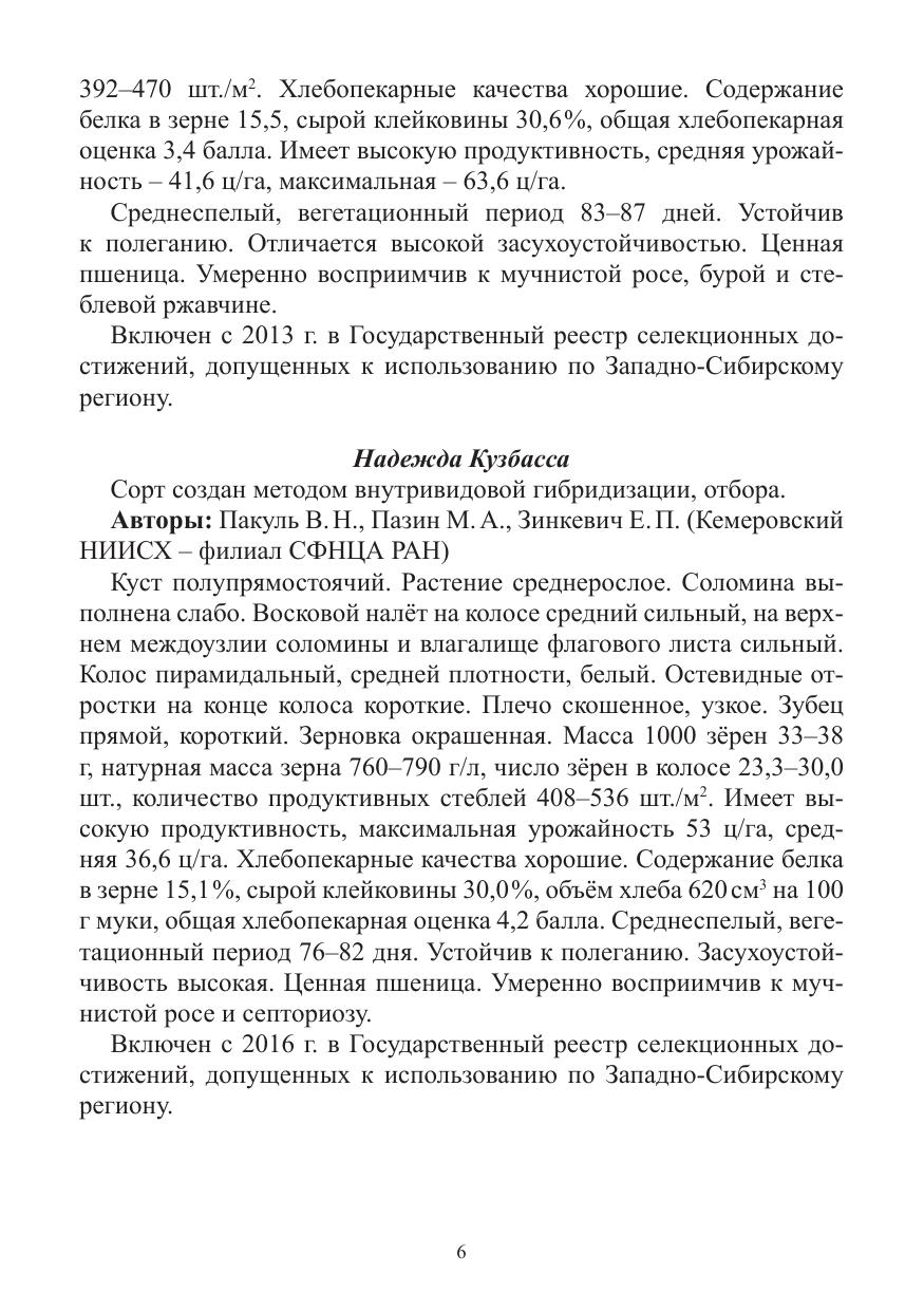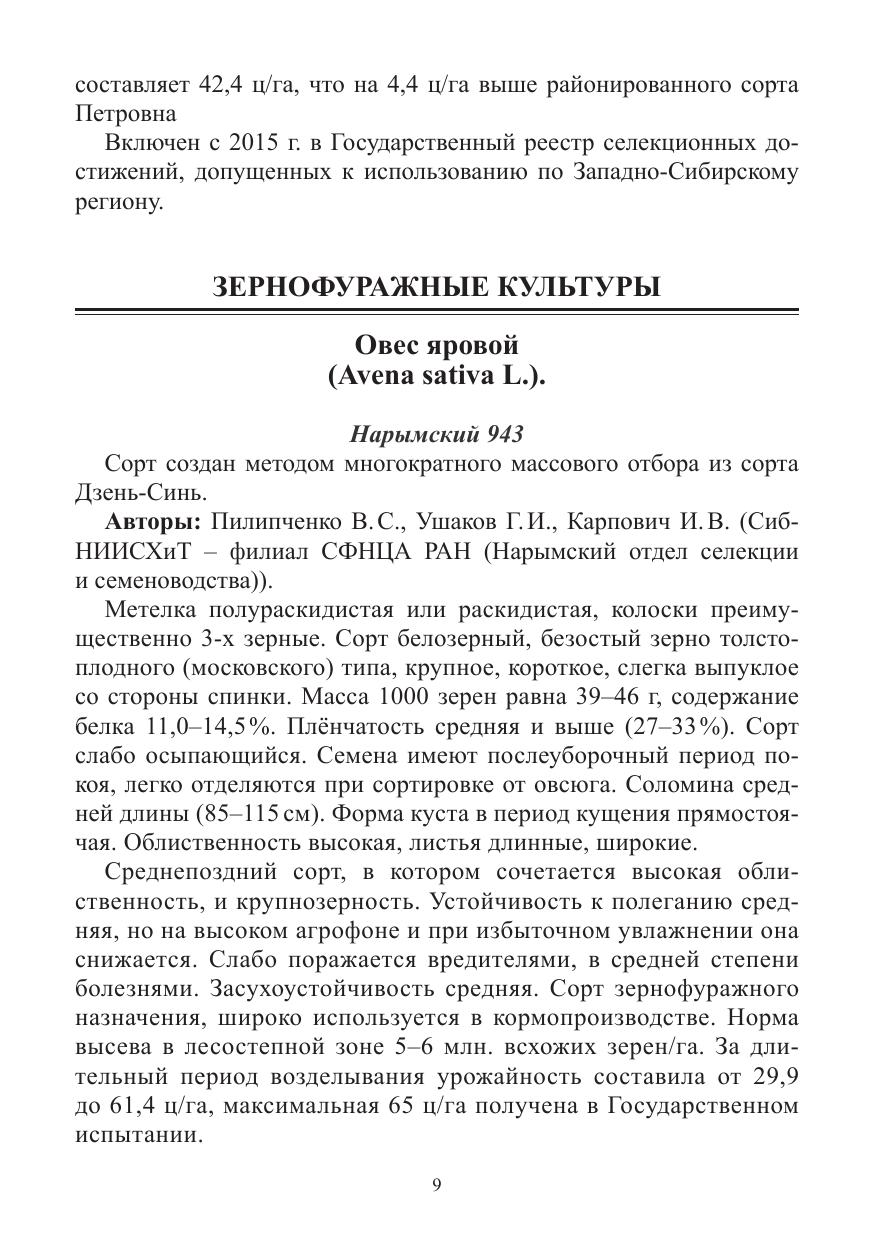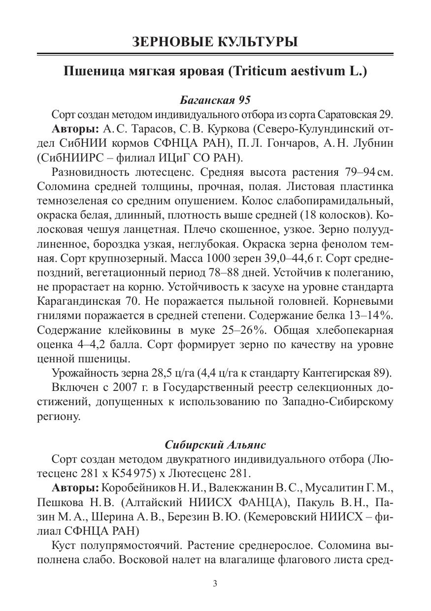 Приведены биолого-морфологические характеристики и хозяйственно-полезные свойства сортов сельскохозяйственных культур селекции Сибирского Федерального научного центра агробиотехнологий РАН (СФНЦА РАН) и Федерального государственного бюджетного образовательного учреждения высшего образования «Новосибирского государственного аграрного университета» (ФГБОУ ВО Новосибирский ГАУ) включенных в Государственный реестр селекционных достижений, допущенных к использованию и переданных на Государственное сортоиспытание. Представлены сорта сельскохозяйственных культур селекции Новосибирского ГАУ и структурных подразделений СФНЦА РАН – Сибирского научно-исследовательского института кормов и филиалов СФНЦА РАН: Кемеровского научно-исследовательского института сельского хозяйства, научно-исследовательского института ветеринарии Восточной Сибири, Сибирского научно-исследовательского института сельского хозяйства и торфа.