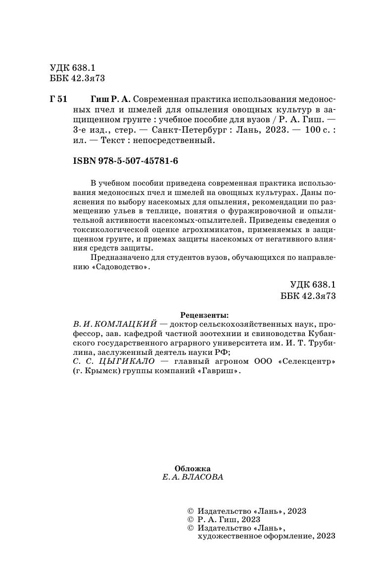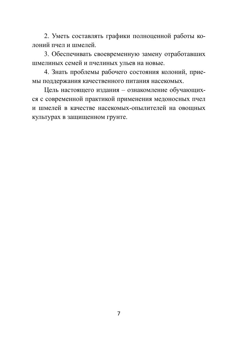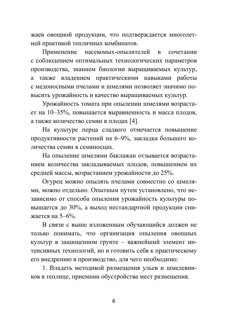 В учебном пособии приведена современная практика использования медоносных пчел и шмелей на овощных культурах. Даны пояснения по выбору насекомых для опыления, рекомендации по размещению ульев в теплице, понятия о фуражировачной и опылительной активности насекомых-опылителей. Приведены сведения о токсикологической оценке агрохимикатов, применяемых в защищенном грунте и приемах защиты насекомых от негативного влияния средств защиты. Предназначено для студентов, обучающихся по направлению подготовки «Садоводство».