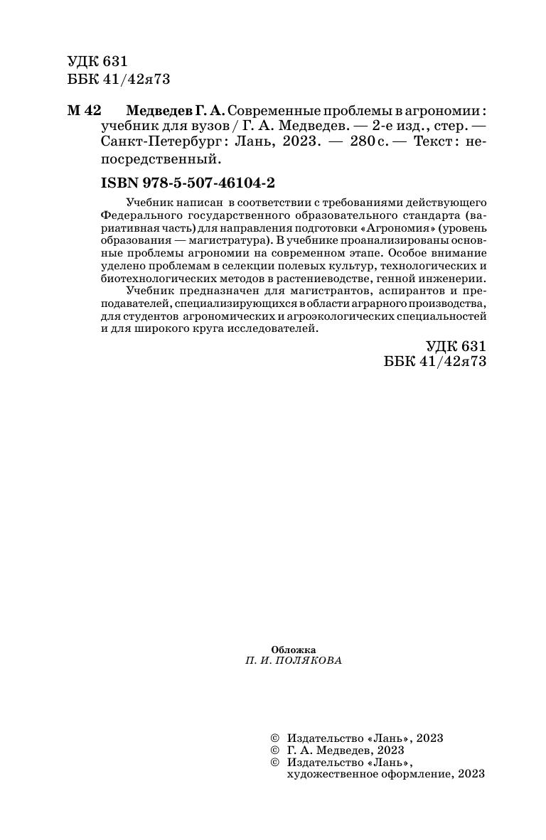 Учебник написан в соответствии с требованиями действующего Федерального государственного образовательного стандарта (вариативная часть) для направления подготовки «Агрономия» (уровень образования — магистратура). В учебнике проанализированы основные проблемы агрономии на современном этапе. Особое внимание уделено проблемам в селекции полевых культур, технологических и биотехнологических методов в растениеводстве, генной инженерии. Учебник предназначен для магистрантов, аспирантов и преподавателей, специализирующихся в области аграрного производства, для студентов агрономических и агроэкологических специальностей и для широкого круга исследователей.