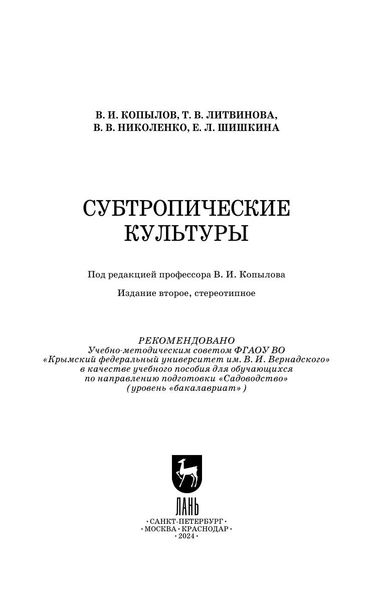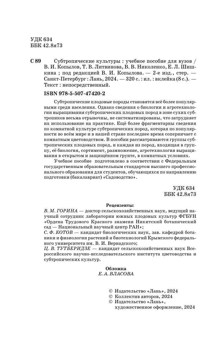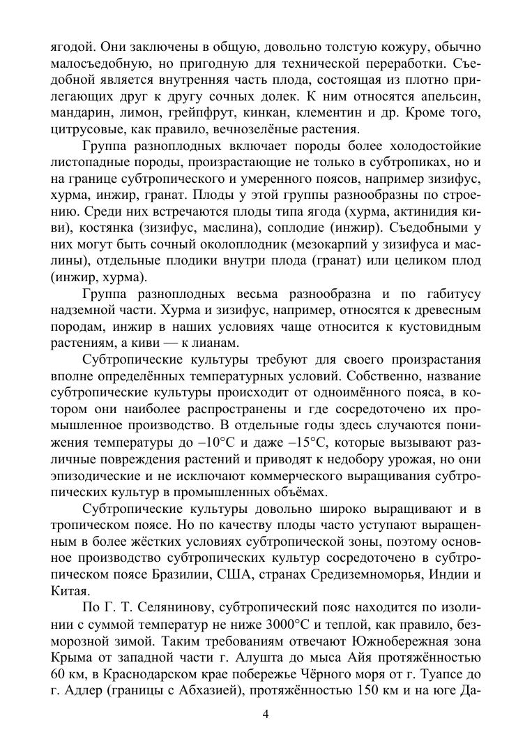 Субтропические плодовые породы становятся все более популярными среди населения. Однако сведения о биологии и агротехнологии выращивания субтропических плодовых пород в зоне сухих субтропиков весьма отрывочны, не систематизированы, что затрудняет их использование на практике. Еще более фрагментарны сведения по комнатной культуре субтропических пород, которая по популярности во всем мире и в нашей стране последнее время соперничает с комнатным цветоводством. Она не знают климатических границ, и может быть использована повсеместно в зоне умеренного пояса. В пособии рассматриваются группы субтропических плодовых пород и каждая из пород, входящая в группу, ее биология, сортимент, размножение, агротехнология выращивания в открытом и защищенном грунте, в комнатных условиях. Учебное пособие подготовлено в соответствии с Федеральным государственным образовательным стандартом высшего профессионального образования для студентов, обучающихся по специальности «Садоводство».