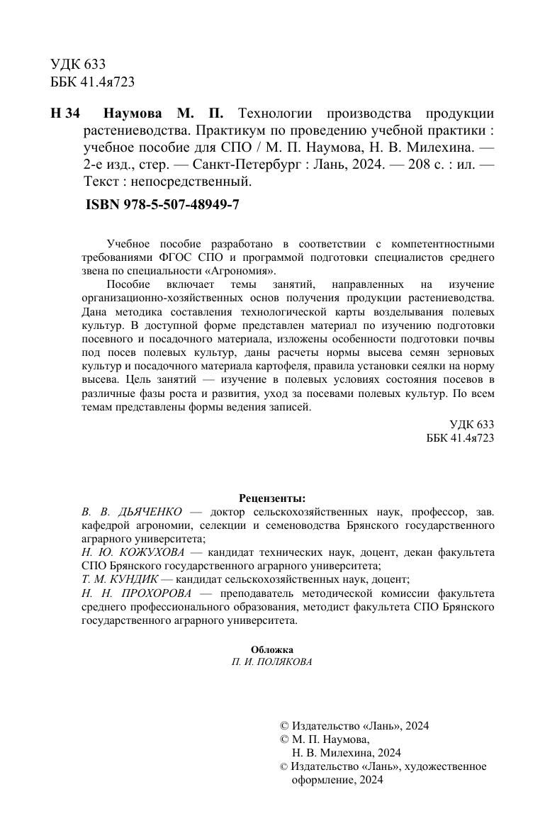 Технологии производства продукции растениеводства. Практикум по проведению учебной практики