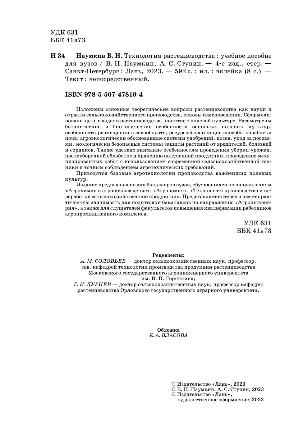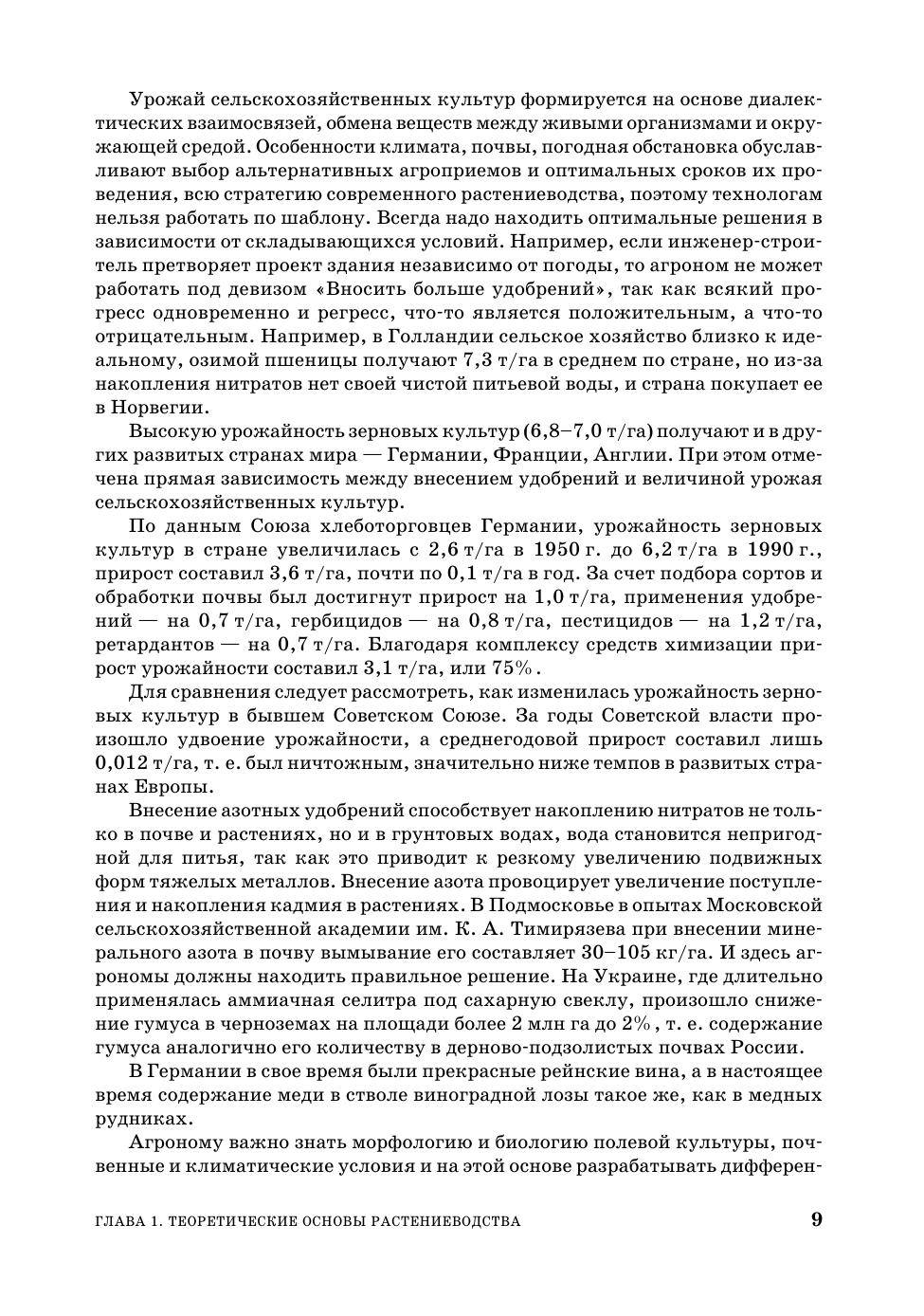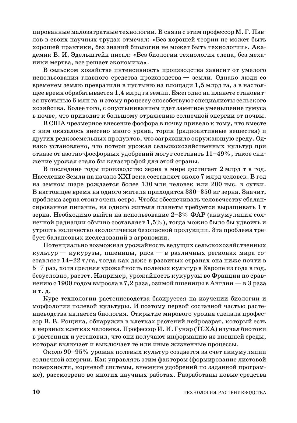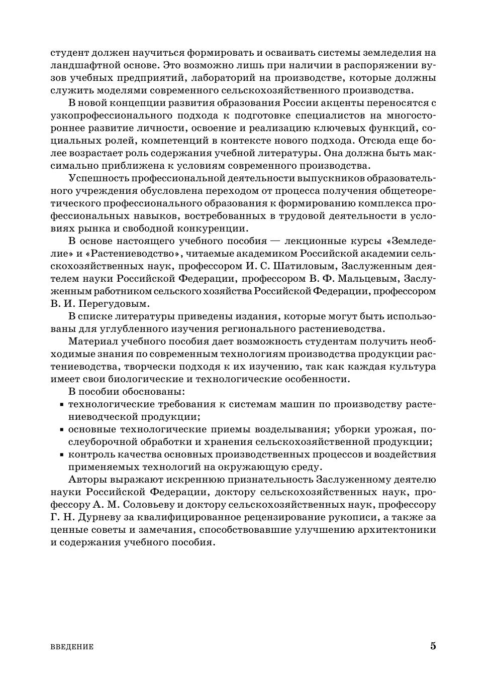 В учебном пособии изложены основные теоретические вопросы растениеводства как науки и отрасли сельскохозяйственного производства. Сформулированы цель и задачи растениеводства, понятие о полевой культуре. Изложены основы семеноведения. Рассмотрены ботанические и биологические особенности основных полевых культур. Приводятся базовые агротехнологии производства важнейших полевых культур — районированные и перспективные экологически пластичные сорта, особенности размещения в севообороте, ресурсосберегающие способы обработки почв, агроэкологически обоснованные системы удобрений, посев, уход за посевами, экологически безопасные системы защиты растений от вредителей, болезней и сорняков, особенности проведения уборки урожая, послеуборочная обработка и хранение полученной продукции. Рассмотрено проведение механизированных работ с использованием современной сельскохозяйственной техники и точным соблюдением агротехнических требований. Предназначено для студентов вузов, обучающихся по направлениям «Агрономия», «Технология производства и переработки сельскохозяйственной продукции», «Агрохимия и агропочвоведение». Представляет интерес и имеет практическую значимость для подготовки бакалавров по направлению «Агроинженерия», а также для слушателей факультетов повышения квалификации работников агропромышленного комплекса.