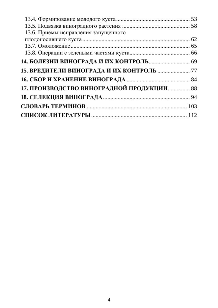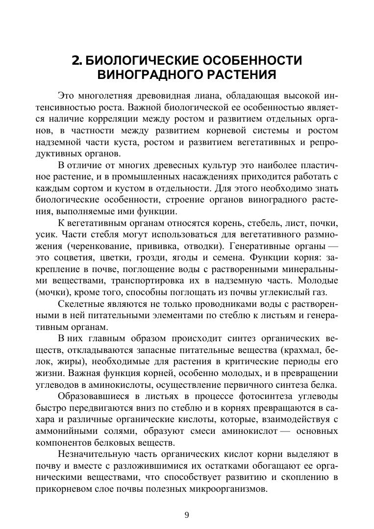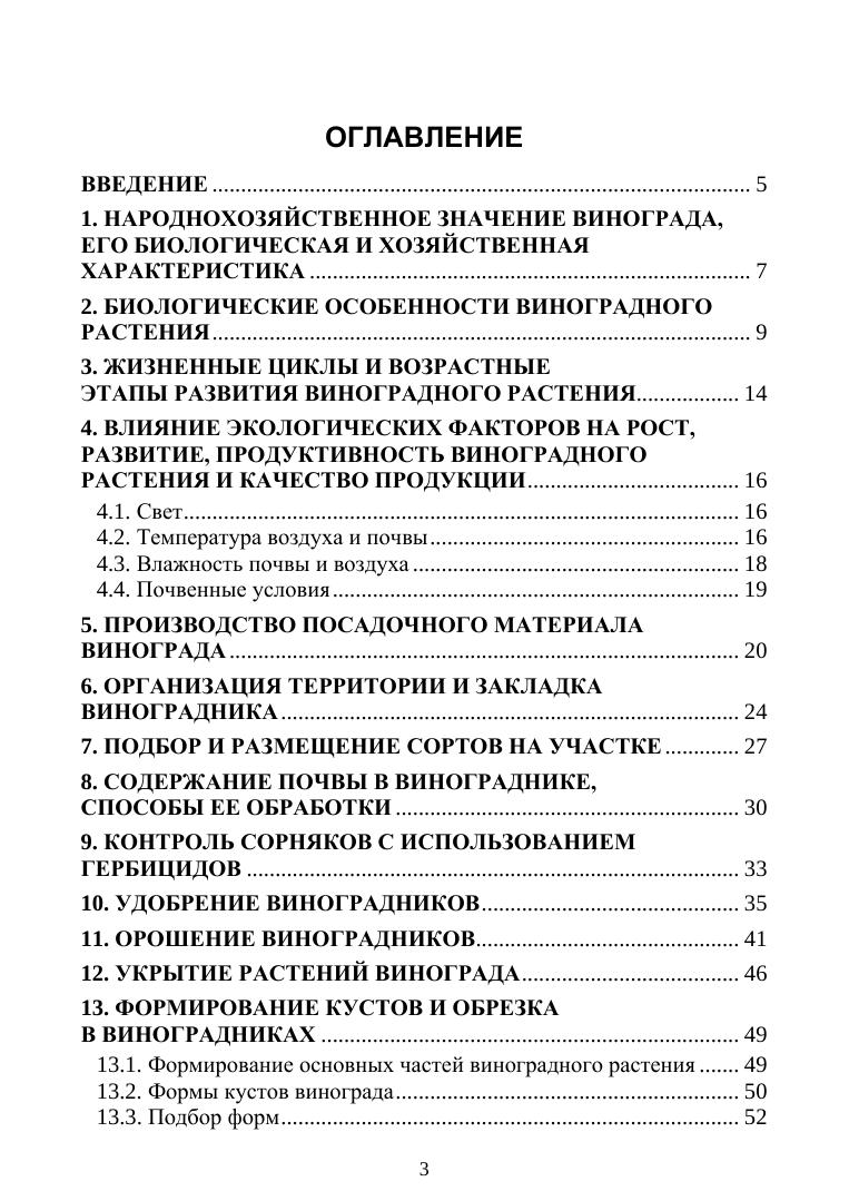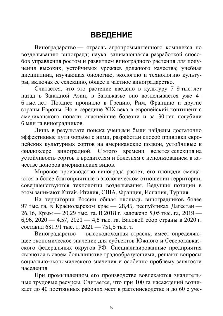 В пособии показаны народнохозяйственное значение винограда, его биологическая и хозяйственная характеристика, изложены биологические особенности, жизненные циклы и возрастные этапы развития. Влияние экологических факторов на рост, развитие, продуктивность виноградного растения и качество продукции. Производство посадочного материала, организация территории и закладка виноградника, подбор и размещение сортов, содержание почвы, удобрение и орошение в винограднике, формирование кустов и обрезка. Болезни и вредители виноградного растения, их контроль, сбор и хранение продукции. В работе использованы результаты исследований научных учреждений и передовой производственный опыт. Пособие предназначено для студентов аграрных вузов, преподавателей, руководителей и специалистов сельского хозяйства.