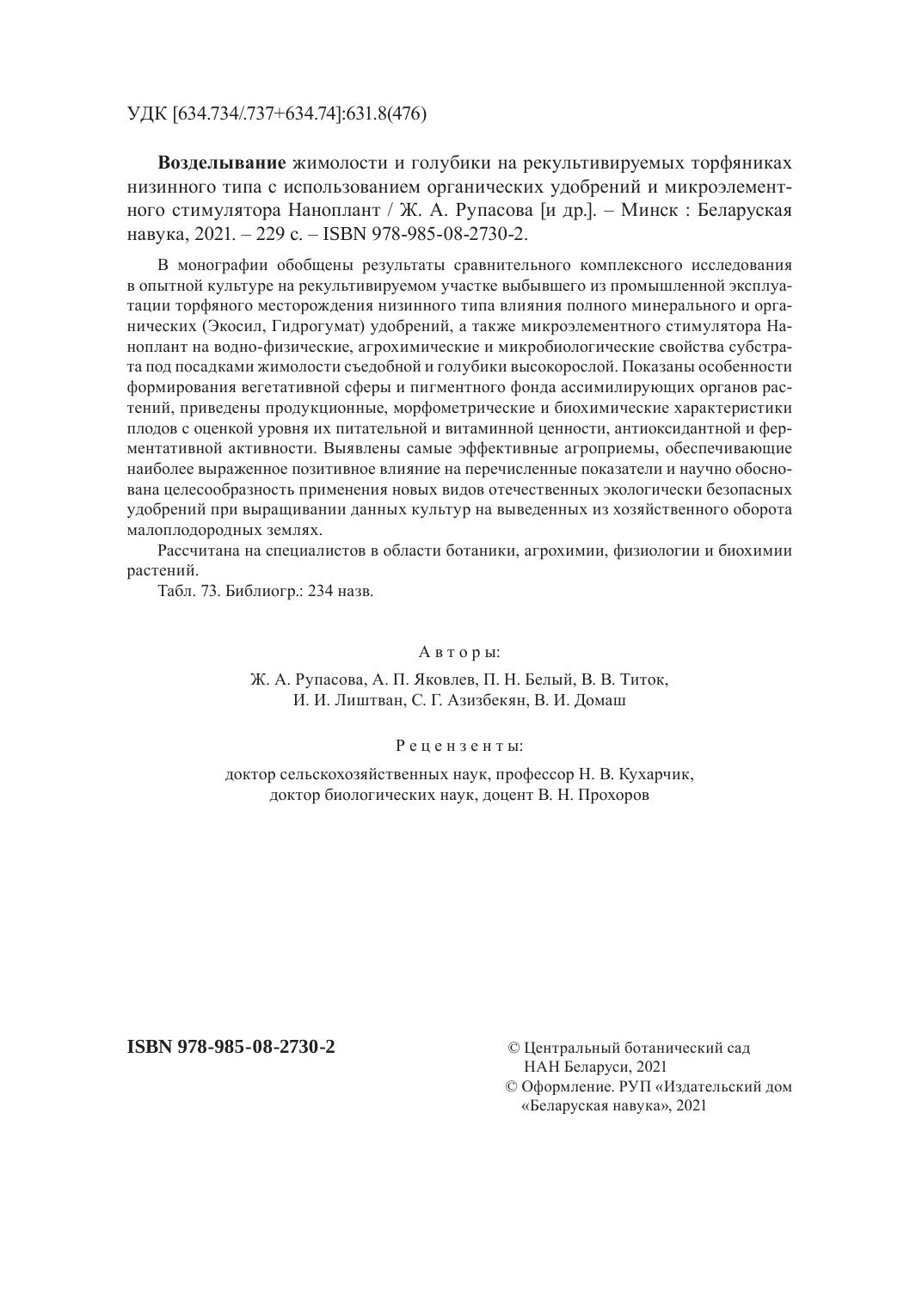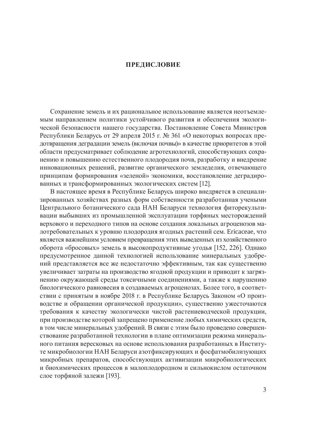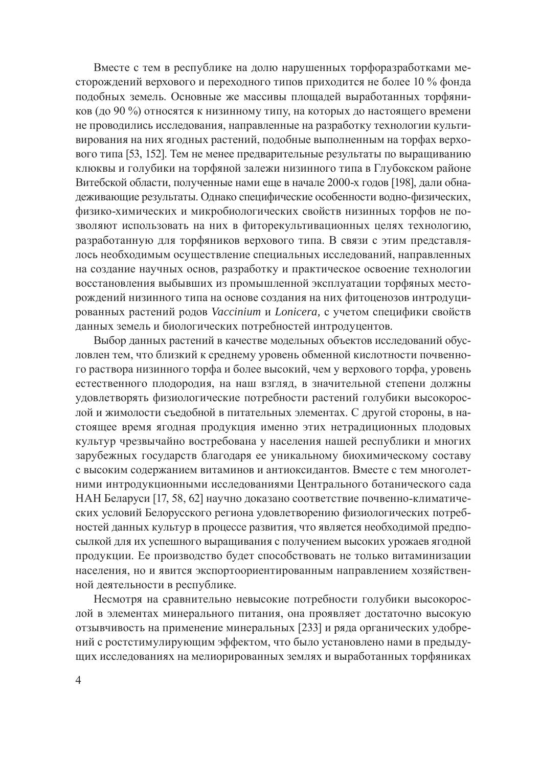 В монографии обобщены результаты сравнительного комплексного исследования в опытной культуре на рекультивируемом участке выбывшего из промышленной эксплуатации торфяного месторождения низинного типа влияния полного минерального и органических (Экосил, Гидрогумат) удобрений, а также микроэлементного стимулятора Наноплант на водно-физические, агрохимические и микробиологические свойства субстрата под посадками жимолости съедобной и голубики высокорослой. Показаны особенности формирования вегетативной сферы и пигментного фонда ассимилирующих органов растений, приведены продукционные, морфометрические и биохимические характеристики плодов с оценкой уровня их питательной и витаминной ценности, антиоксидантной и ферментативной активности. Выявлены самые эффективные агроприемы, обеспечивающие наиболее выраженное позитивное влияние на перечисленные показатели и научно обоснована целесообразность применения новых видов отечественных экологически безопасных удобрений при выращивании данных культур на выведенных из хозяйственного оборота малоплодородных землях.
