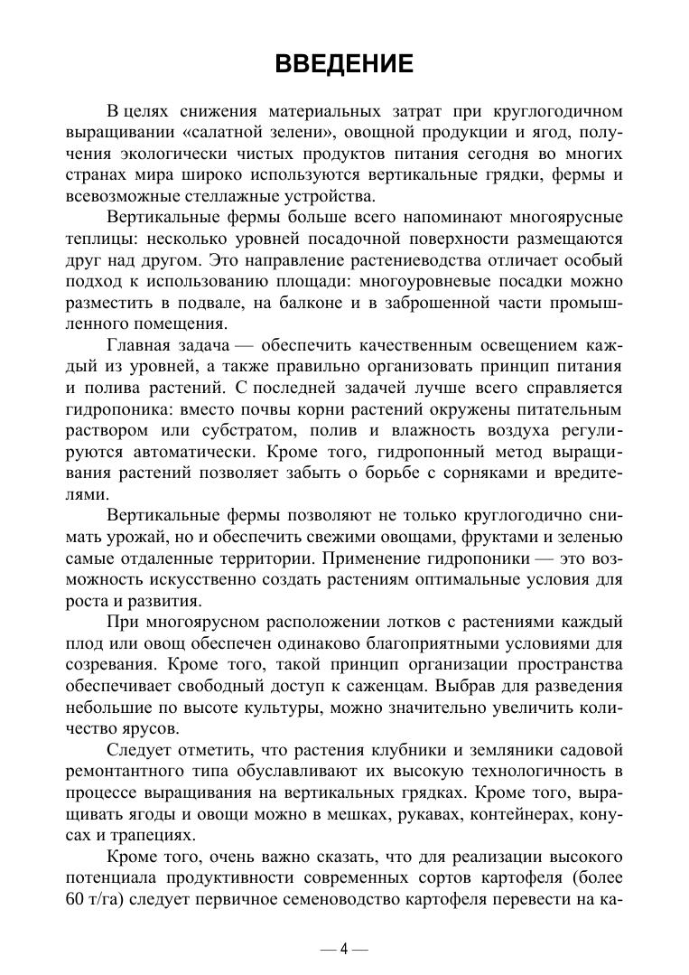 В учебном пособии представлены технологические приемы круглогодичного выращивания ягод, овощей и картофеля на вертикальных грядках и стеллажах. Подробно описаны современные конструкции сооружений защищенного грунта стеллажного типа в России и других странах. Значительное место отведено внедрению технологии туннельного выращивания ягод и овощей с применением автоматического полива. Они являются базовыми звеньями при освоении экологически безопасных и энергосберегающих приемов производства ягод и овощей. В учебном пособии рассмотрены варианты внедрения гидропоники и аэропоники при выращивании овощей и картофеля. Особое внимание уделено повышению эффективности размножения оздоровленного посадочного материала картофеля в абсолютно стерильных условиях при использовании сочетания современных методов биотехнологии. Соответствует современным требованиям Федерального государственного образовательного стандарта среднего профессионального образования и профессиональным квалификационным требованиям. Учебное пособие предназначено для подготовки специалистов среднего звена (СПО) по специальности «Агрономия».