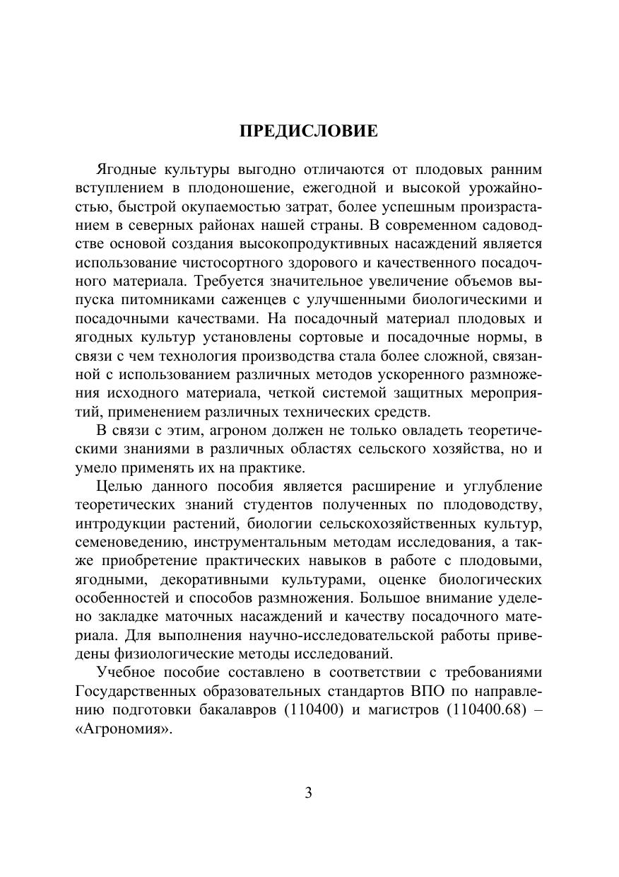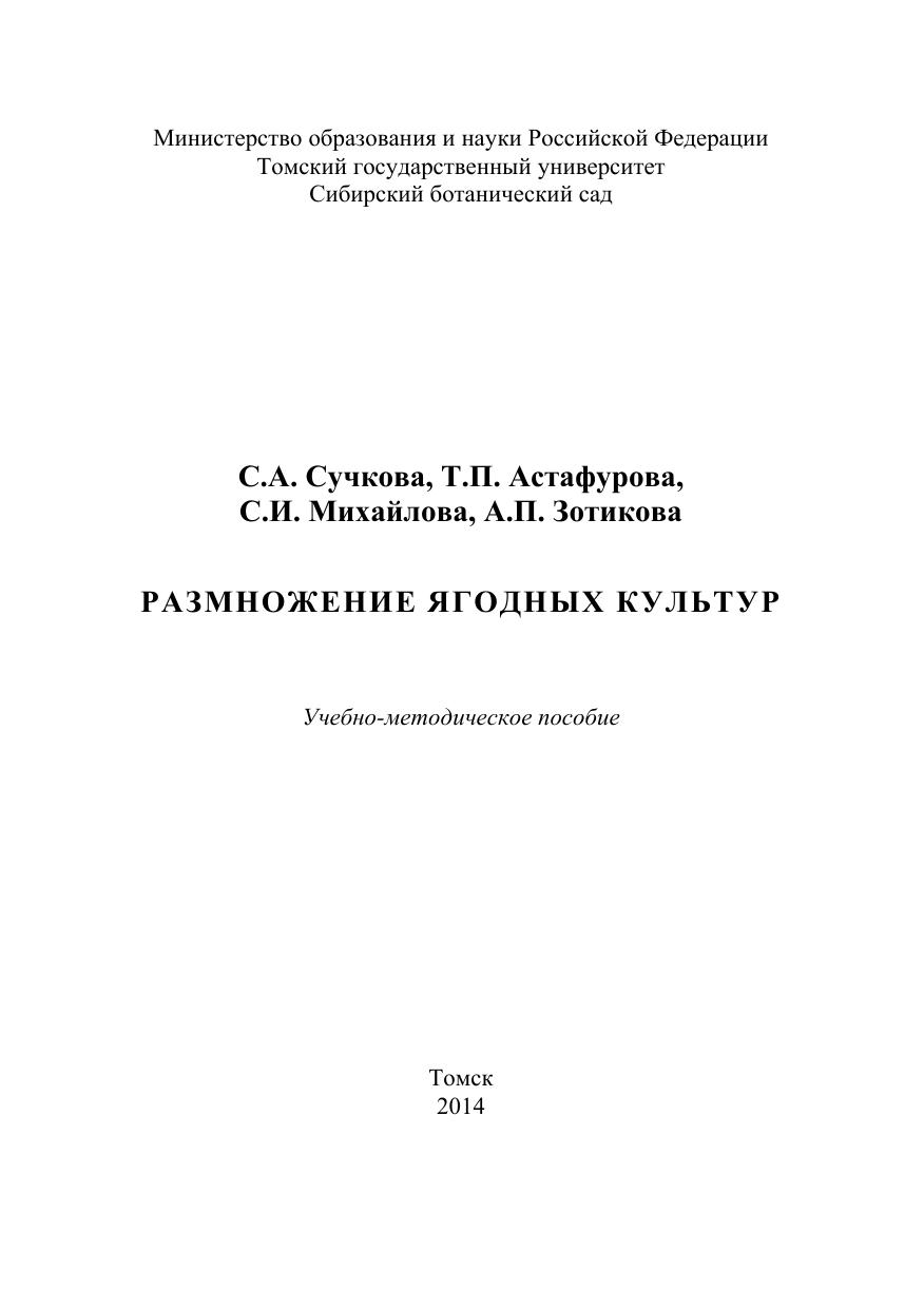 Учебно-методическое пособие предназначено для студентов Биологического института ТГУ очного обучения при изучении курса «Плодоводство», «Интродукция растений», «Биология сельскохозяйственных культур» и прохождении учебной практики по агрономии на 2 курсе. Разработано в соответствии с требованиями основной образовательной программы ВПО по направлению подготовки 110400 – «Агрономия». В пособии приведены биологические основы размножения ягодных культур, изложены биологические особенности и способы размножения, описаны закладка маточных насаждений и требования к качеству саженцев. Рассмотрены некоторые физиологические методы исследований. Для студентов, обучающихся по направлению подготовки ВПО 110400 – Агрономия (бакалавриат) и 110400.68 – Агрономия (магистратура).