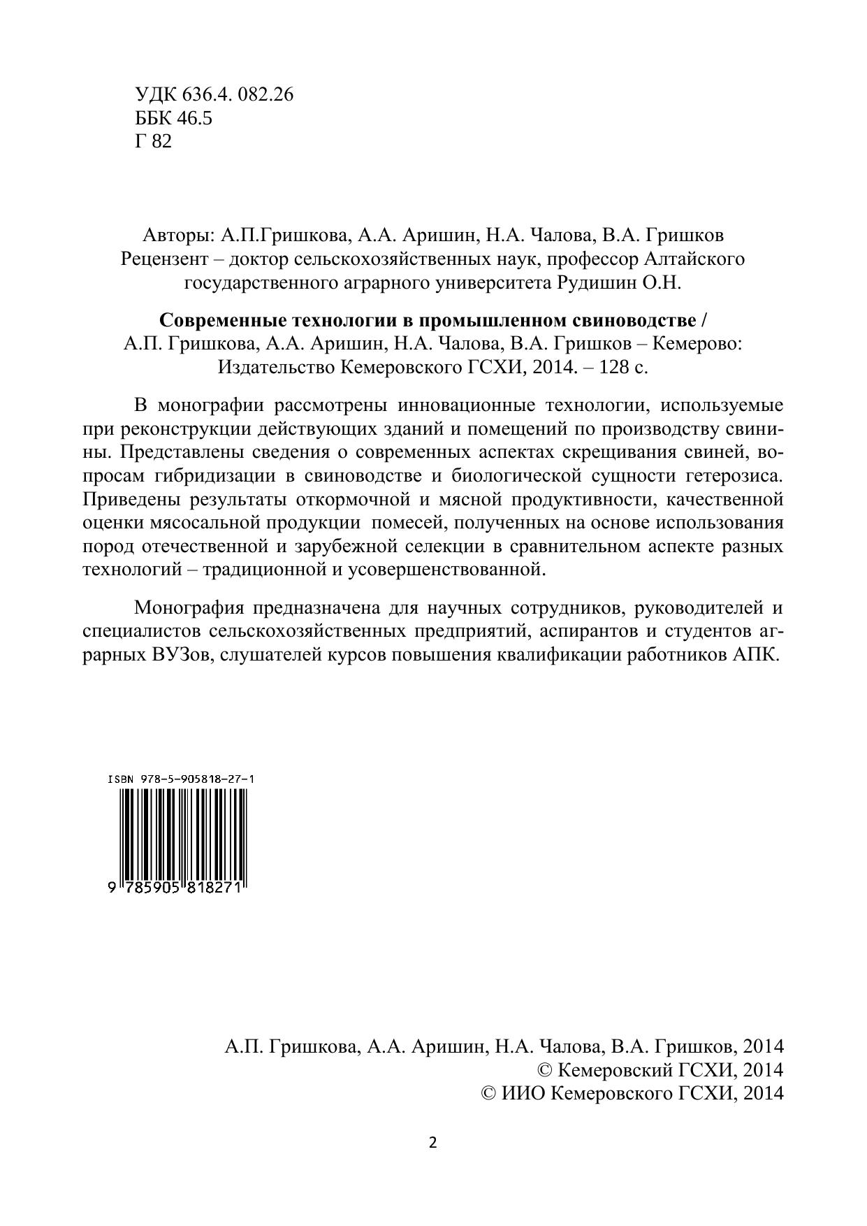 В монографии рассмотрены инновационные технологии, используемые при реконструкции действующих зданий и помещений по производству свинины. Представлены сведения о современных аспектах скрещивания свиней, вопросам гибридизации в свиноводстве и биологической сущности гетерозиса.