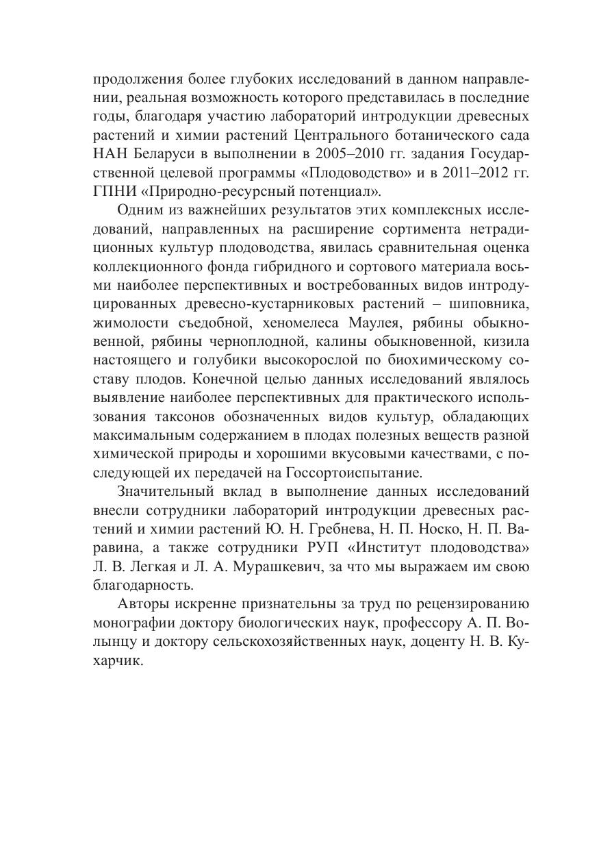 В монографии обобщены результаты многолетних исследований биохимического состава плодов интродуцированных в условиях Беларуси 83 сортов и гибридных форм малораспространенных культур садоводства – жимолости съедобной, хеномелеса Маулея, шиповника, рябины обыкновенной, рябины черноплодной, калины обыкновенной, кизила настоящего и голубики высокорослой по широкому спектру показателей (органические кислоты, углеводы, фенольные соединения, макроэлементы), с оценкой влияния на них генотипа и абиотических факторов. Показаны межвидовые различия уровней генетической детерминированности отдельных его характеристик, позволяющие предположить у данных видов разную степень их наследования в процессе гибридизации. Выявлены таксоны обозначенных видов, наиболее перспективные по совокупности признаков для использования в селекционном процессе и введения в культуру в условиях Беларуси. Предназначена для широкого круга специалистов в области ботаники, интродукции, физиологии и биохимии растений, сельского и лесного хозяйства.