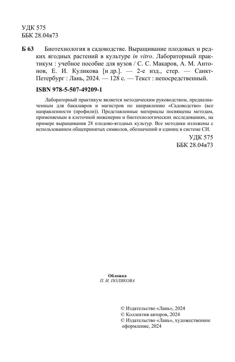 Биотехнология в садоводстве. Выращивание плодовых и редких ягодных растений в культуре in vitro. Лабораторный практикум