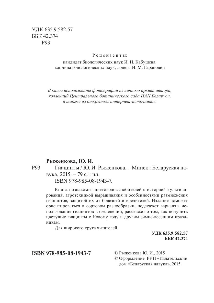 Книга познакомит цветоводов-любителей с историей культивирования, агротехникой выращивания и особенностями размножения гиацинтов, защитой их от болезней и вредителей. Издание поможет ориентироваться в сортовом разнообразии, подскажет варианты использования гиацинтов в озеленении, расскажет о том, как получить цветущие гиацинты к Новому году и другим зимне-весенним праздникам. Для широкого круга читателей.