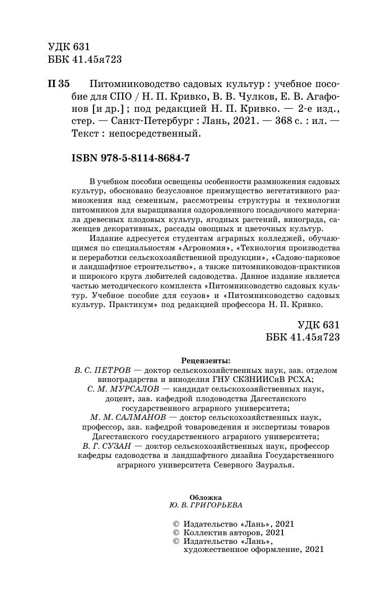 Данное издание является частью методического комплекта «Питомниководство садовых культур. Учебное пособие для ссузов» и «Питомниководство садовых культур. Практикум» под редакцией профессора Н. П.Кривко.