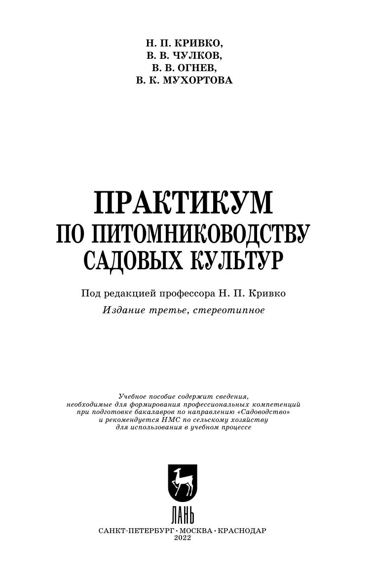 Учебное пособие подготовлено в соответствии с Государственным образовательным стандартом и примерной программой учебной дисциплины «Питомниководство садовых культур» по направлению подготовки «Садоводство».