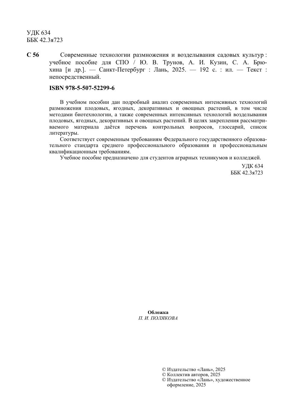 В учебном пособии дан подробный анализ современных интенсивных технологий размножения плодовых, ягодных, декоративных и овощных растений, в том числе методами биотехнологии, а также современных интенсивных технологий возделывания плодовых, ягодных, декоративных и овощных растений. В целях закрепления рассматриваемого материала даётся перечень контрольных вопросов, глоссарий, список литературы. Соответствует современным требованиям Федерального государственного образовательного стандарта среднего профессионального образования и профессиональным квалификационным требованиям. Учебное пособие предназначено для студентов аграрных техникумов и колледжей.
