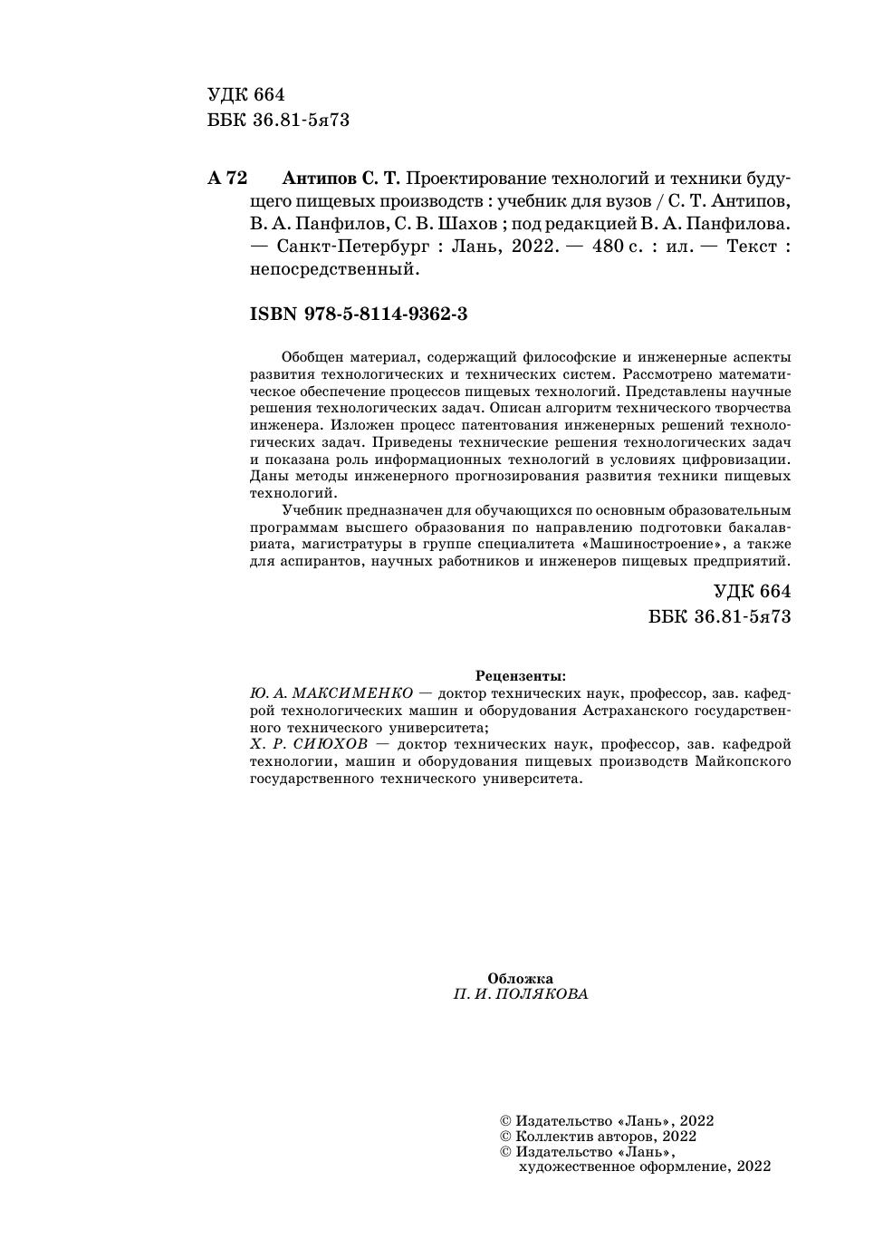 Учебник предназначен для обучающихся по основным образовательным программам высшего образования по направлению подготовки бакалавриата, магистратуры в группе специалитета «Машиностроение», а также для аспирантов, научных работников и инженеров пищевых предприятий.