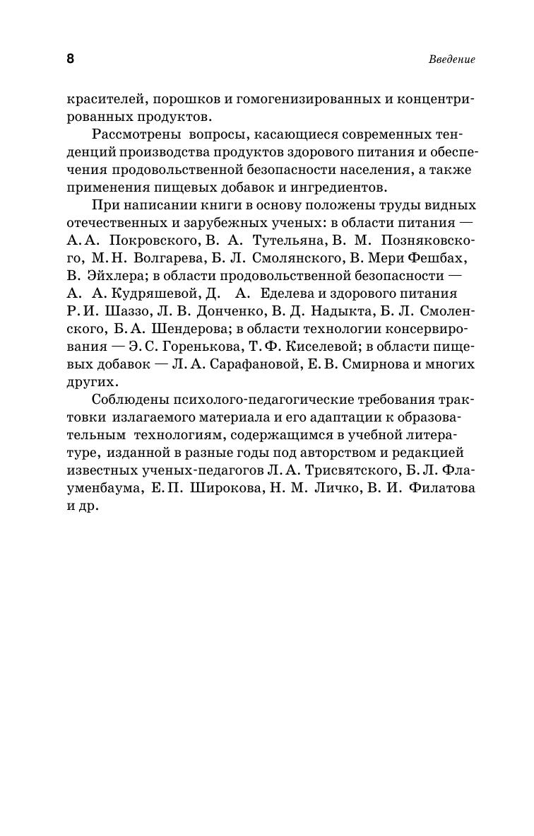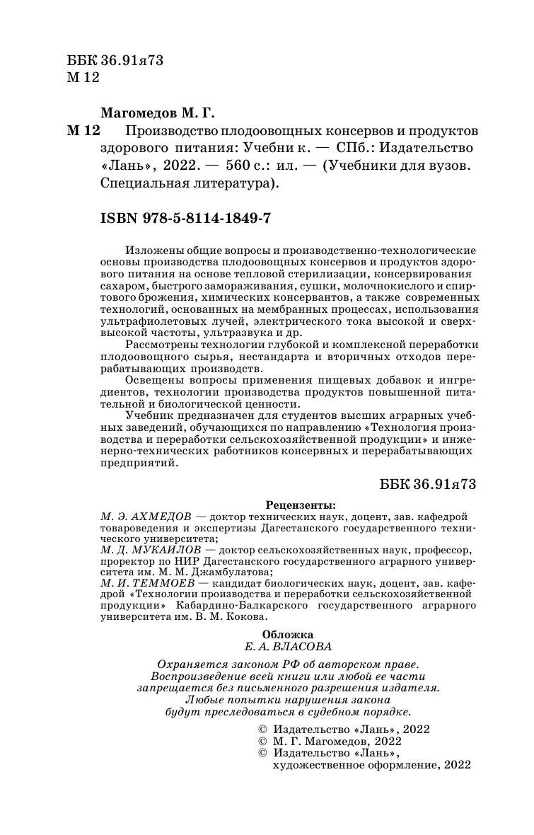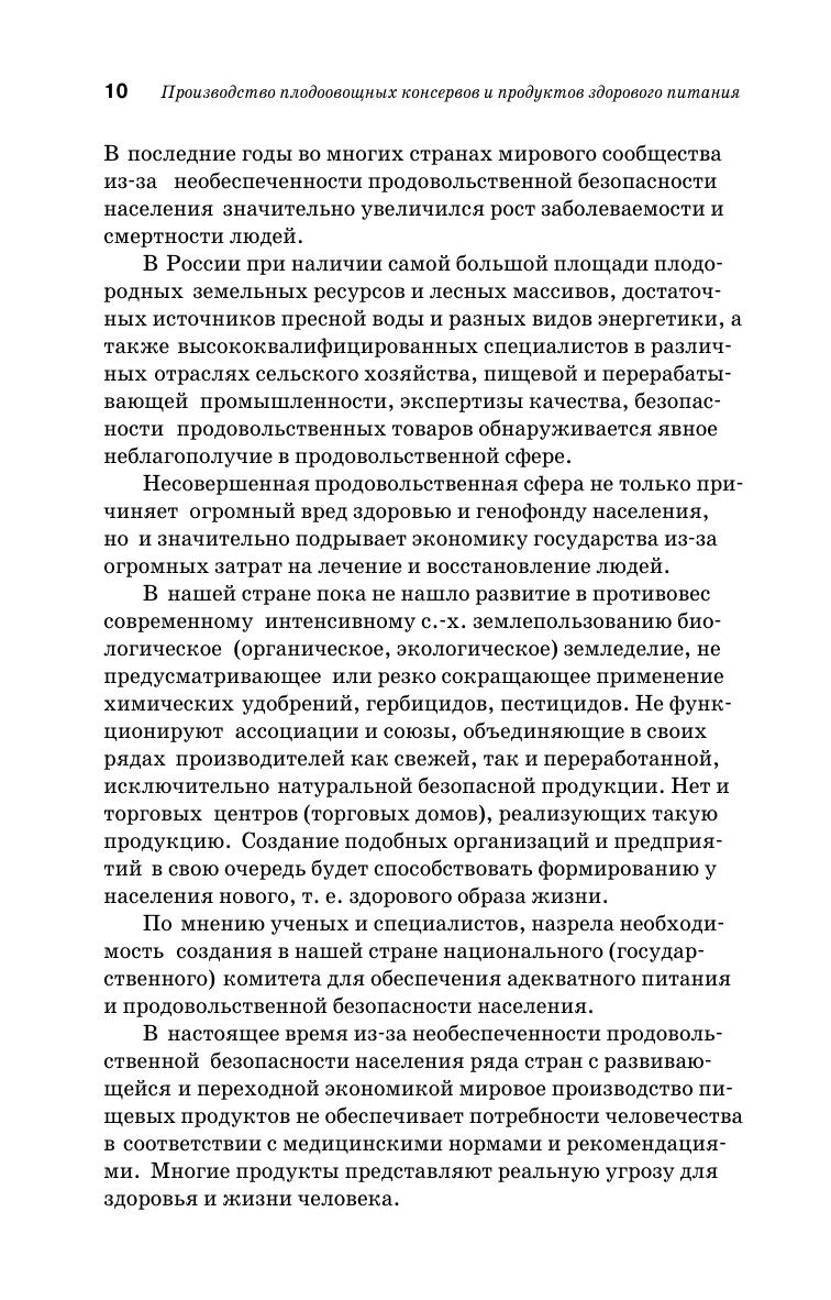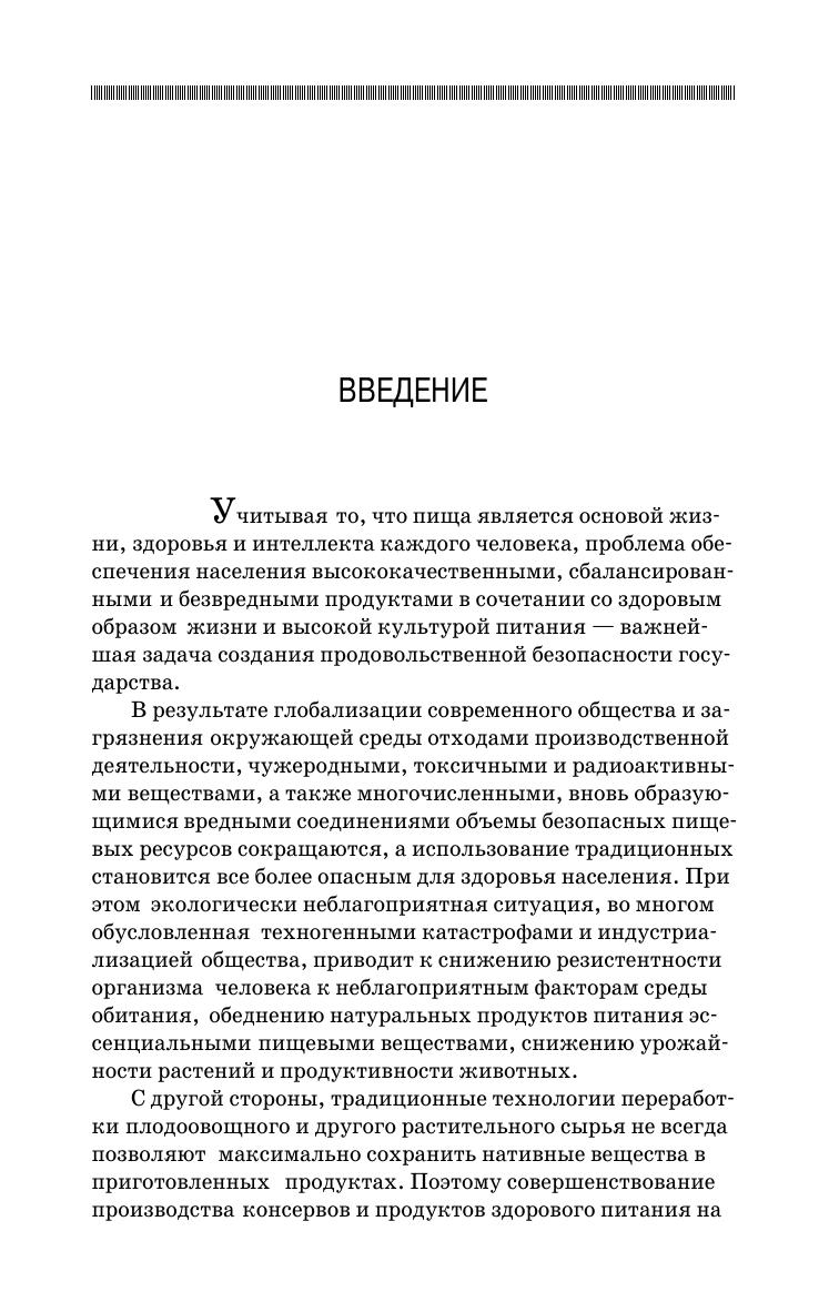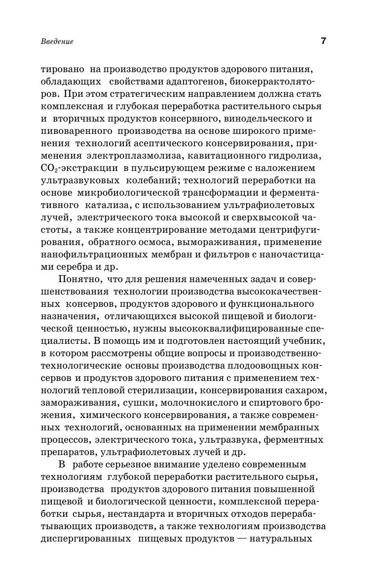 Изложены общие вопросы и производственно-технологические основы производства плодоовощных консервов и продуктов здорового питания на основе тепловой стерилизации, консервирования сахаром, быстрого замораживания, сушки, молочнокислого и спиртового брожения, химических консервантов, а также современных технологий, основанных на мембранных процессах, использования ультрафиолетовых лучей, электрического тока высокой и сверхвысокой частоты, ультразвука и др. Рассмотрены технологии глубокой и комплексной переработки плодоовощного сырья, нестандарта и вторичных отходов перерабатывающих производств. Освещены вопросы применения пищевых добавок и ингредиентов, технологии производства продуктов повышенной питательной и биологической ценности. Учебник предназначен для студентов высших аграрных учебных заведений, обучающихся по направлению «Технология производства и переработки сельскохозяйственной продукции» и инженерно-технических работников консервных и перерабатывающих предприятий.