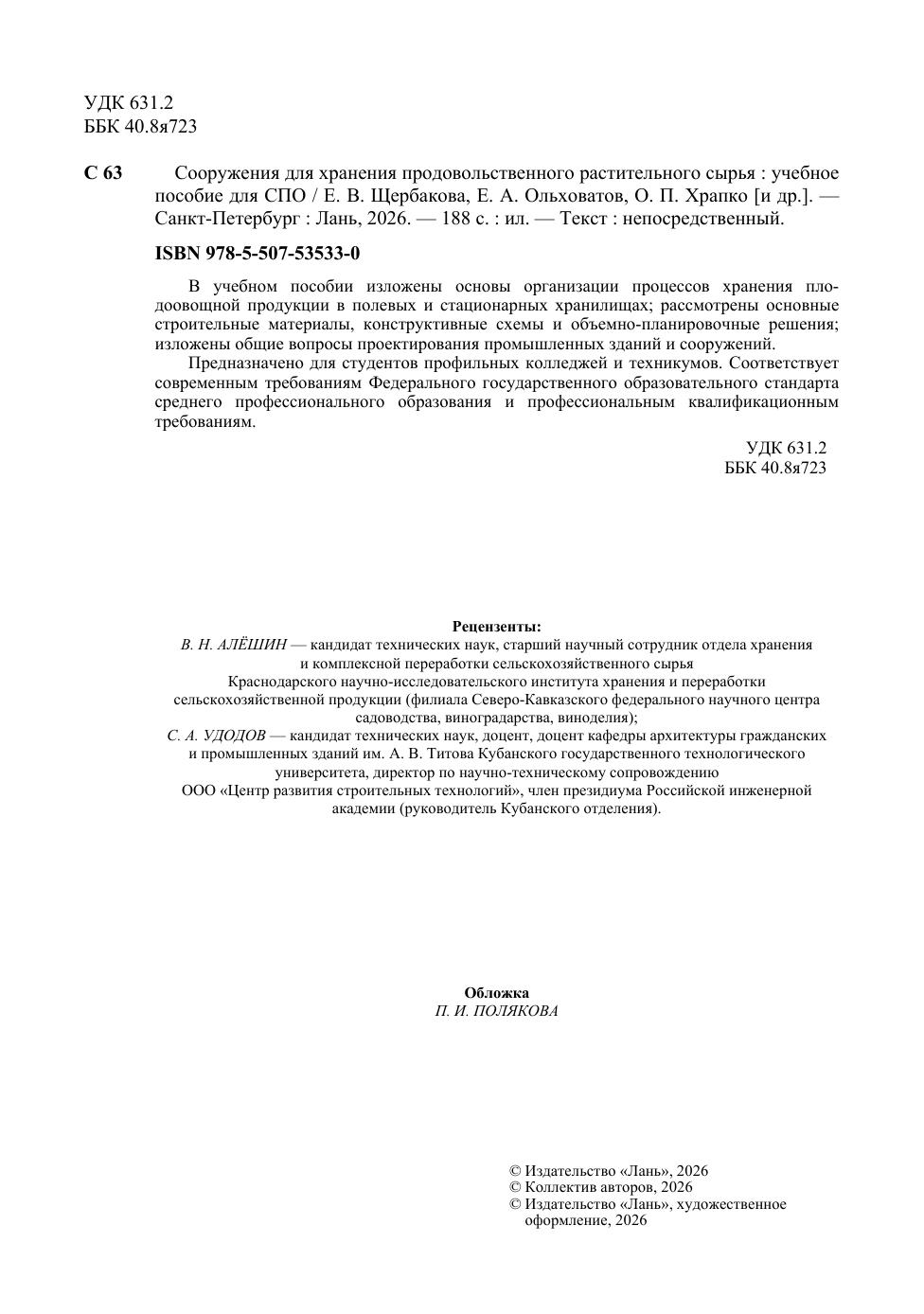 В учебном пособии изложены основы организации процессов хранения плодоовощной продукции в полевых и стационарных хранилищах, рассмотрены основные строительные материалы, конструктивные схемы и объемно-планировочные решения, изложены общие вопросы проектирования промышленных зданий и сооружений. Предназначено для студентов профильных колледжей и техникумов. Соответствует современным требованиям Федерального государственного образовательного стандарта среднего профессионального образования и профессиональным квалификационным требованиям.