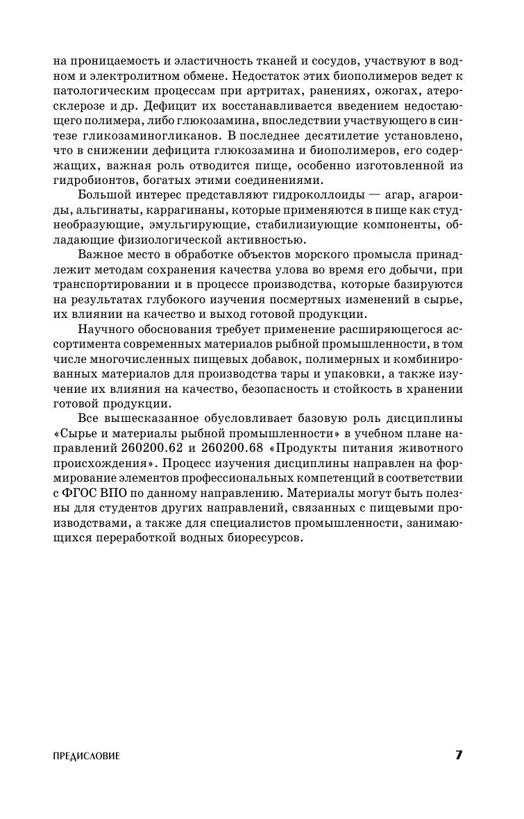 В учебнике дана технологическая характеристика водных биоресурсов. Рассмотрены строение тела и тканей рыб, морфометрическая характеристика, массовый и химический состав, структурно-механические параметры, теплофизические, оптические, акустические свойства. Описано промышленное использование рыбного сырья, беспозвоночных (моллюсков, крабов, омаров и др.), водорослей, морских трав. Освещены принципы и методы консервирования гидробионтов. Описаны основные и вспомогательные материалы рыбной отрасли. Для студентов (курсантов) высших и средних образовательных учреждений, обучающихся по направлению подготовки «Продукты питания животного происхождения», а также широкого круга специалистов рыбной промышленности, занимающихся промыслом, переработкой и реализацией водных биоресурсов, работников рыбоохранных организаций, торговли и общественного питания.