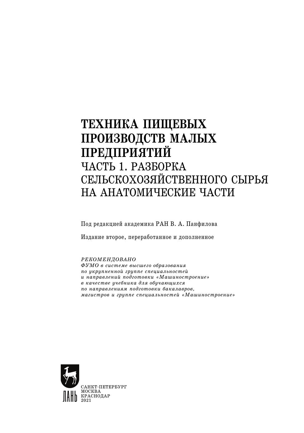 Техника пищевых производств малых предприятий. Часть 1. Разборка сельскохозяйственного сырья на анатомические части