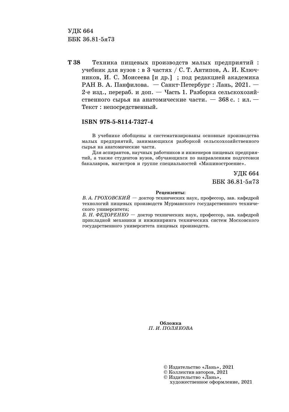 В учебнике обобщены и систематизированы основные производства малых предприятий, занимающихся разборкой сельскохозяйственного сырья на анатомические части.