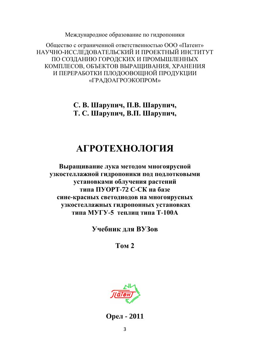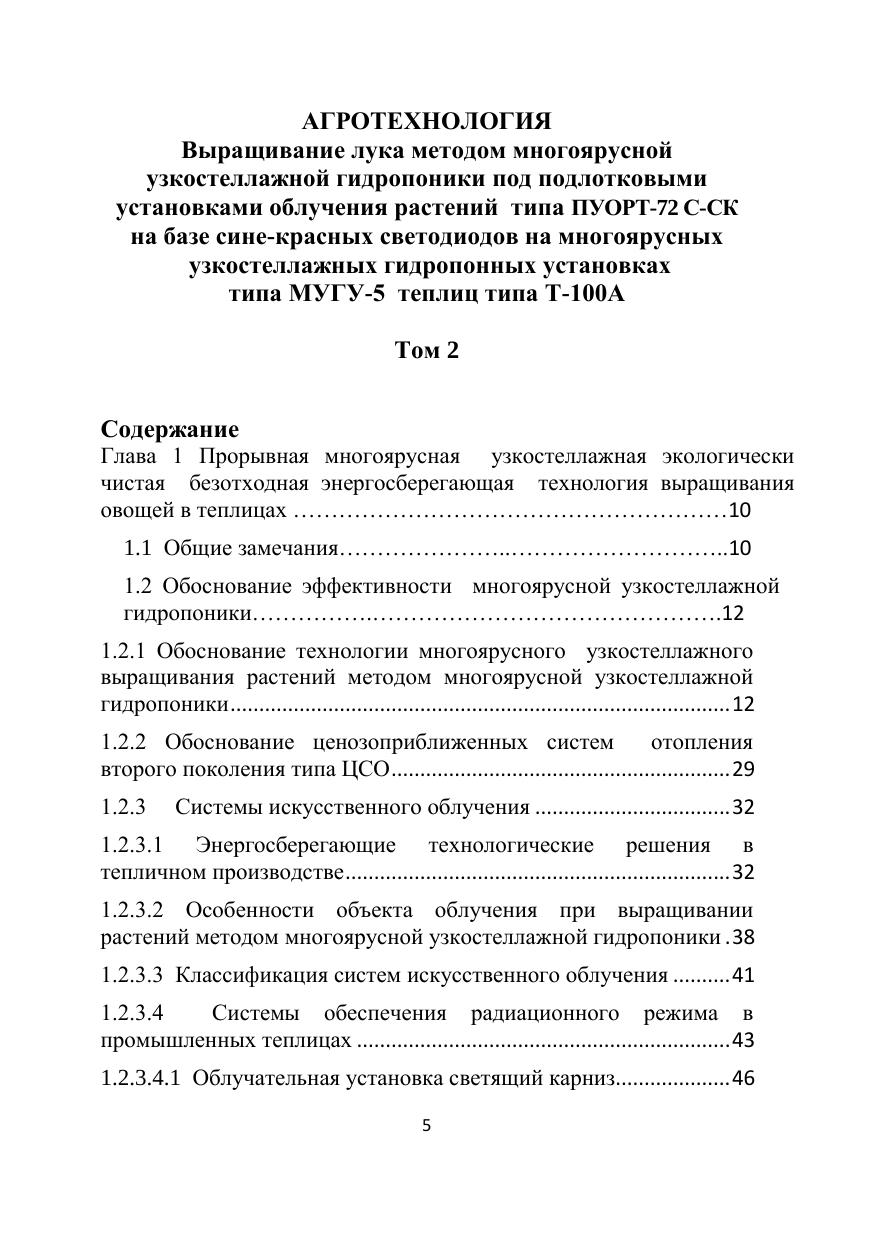 Агротехнология. Том 2. Выращивание лука методом многоярусной узкостеллажной гидропоники под подлотковыми установками облучения растений типа ПУОРТ-72 С-СК на базе сине-красных светодиодов на многоярусных узкостеллажных гидопонных установках типа МУГУ-5 теплиц типа Т-100А. Т. 2