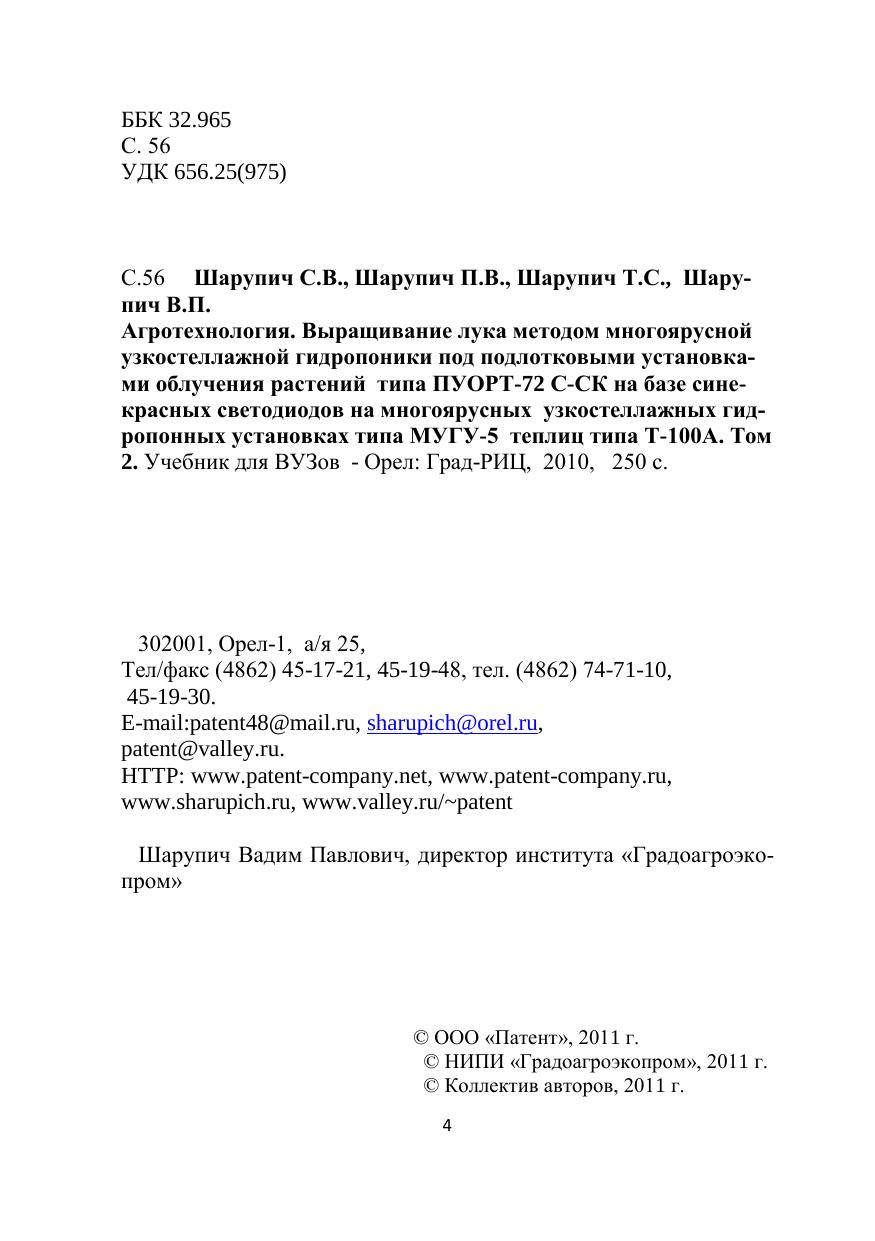 Авторы: Шарупич С.В., Шарупич П.В., Шарупич Т.С., Шарупич В.П.